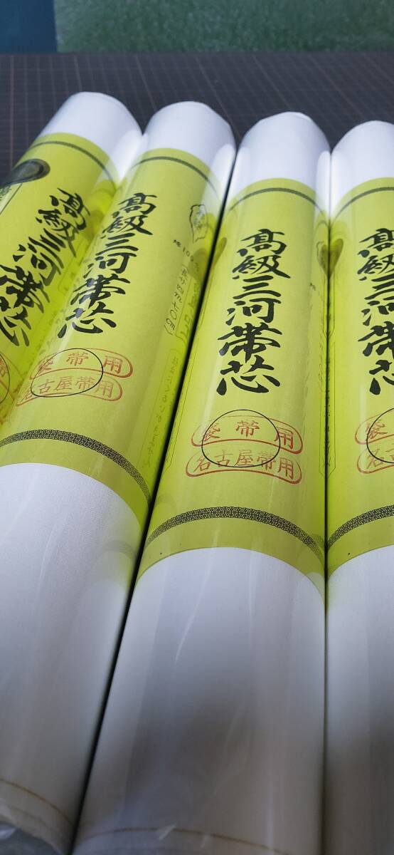三河帯芯の製造メーカーです。当社の織物機械で織り上げた綿の帯芯です。万能の帯芯です。(360g/本前後)少しだけ織物のきずや汚れがあり呉服店様には出荷できませんので出品させていただきました。丸巻にしてあります