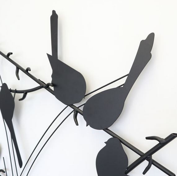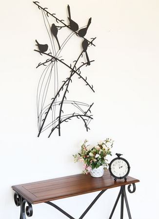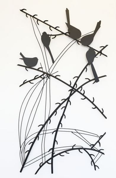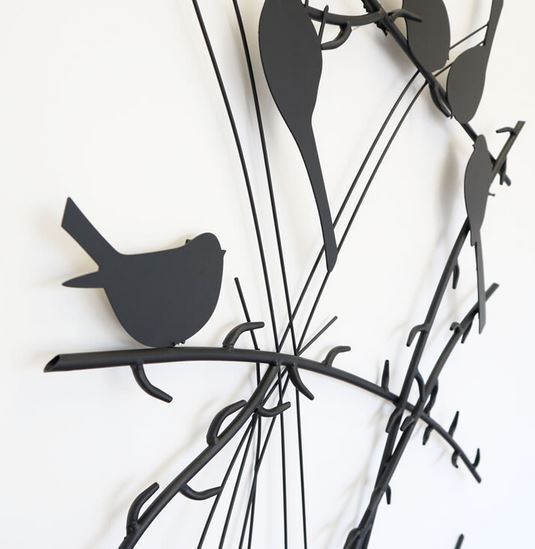 小枝にとまり佇む小鳥のデザインが楽しいアイアン壁飾りです。