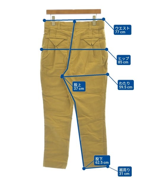| ウエスト:77cm,裾周り:31cm,ヒップ:85cm,わたり:59.5cm,股上:37cm,股下:62.5cm |