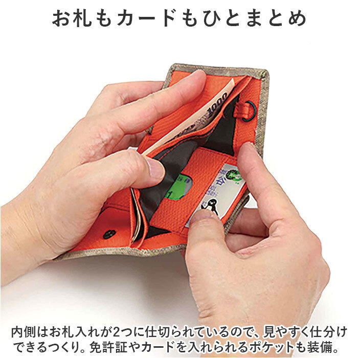 商品説明 | ・・手の中にすっぽりおさまる機能的なマイクロ財布!「WEEKENDER coruri BASIC」が新登場。 ・【週末用のお財布に】 ・コンパクトな三つ折り財布ながらも紙幣・小銭・カードをしっかり収納。週末、身軽に出かけたい方のための小さなお財布。 ・【ガバッと開くボックス型小銭入れ】 ・背面の独立型小銭入れは大きく開いて中が見やすく、出し入れもスムーズ。 ・【お札もカードもひとまとめ】 ・内側はお札入れが2つに仕切られているので、見やすく仕分けできるつくり。免許証やカードを入れられるポケットも装備。 ・【便利なミニポケット】 ・中央にミニポケットを配置。会計後にレシートをサッと入れることができて便利。 ・【Dカン付きで紛失防止】 ・Dカンが付いているので、お手持ちのカラビナやチェーンを取り付けて紛失防止に◎ ・【豊富なカラーバリエーション】 ・内側のバイカラーがアクセントになったシンプルなデザイン。年代問わずユニセックスで使えるのでギフトにもおすすめ。 ・【ポケット仕様】 ・背面:小銭入れ×1 ・内側:お札入れ×2、カード収納×2、ミニポケット×1 |