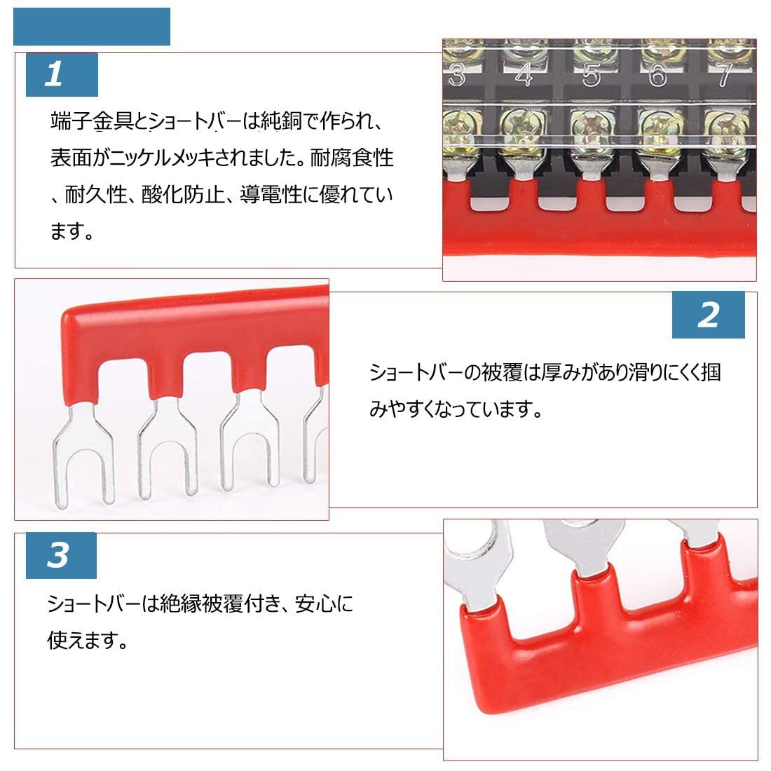 • 5.極数6の4本の端子台と2色ショートバーセットです。色々な回路に適用します。ネジは幅0.9mm、定格:600V 15A、適応電線:0.5-1.5mm 。