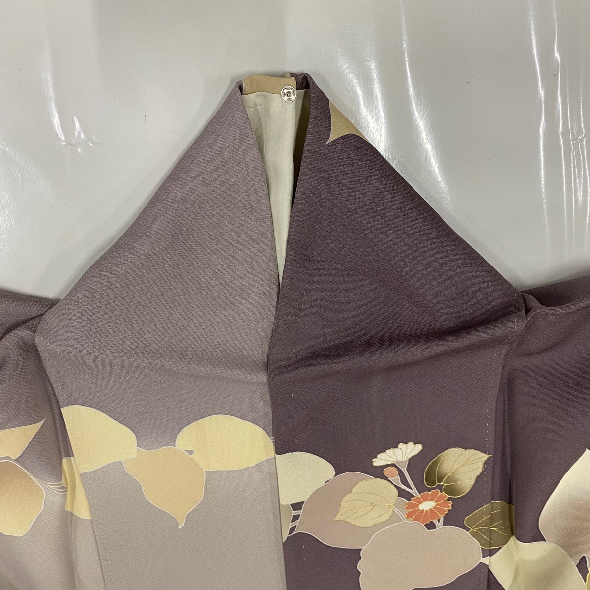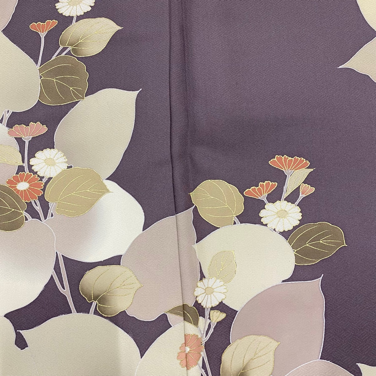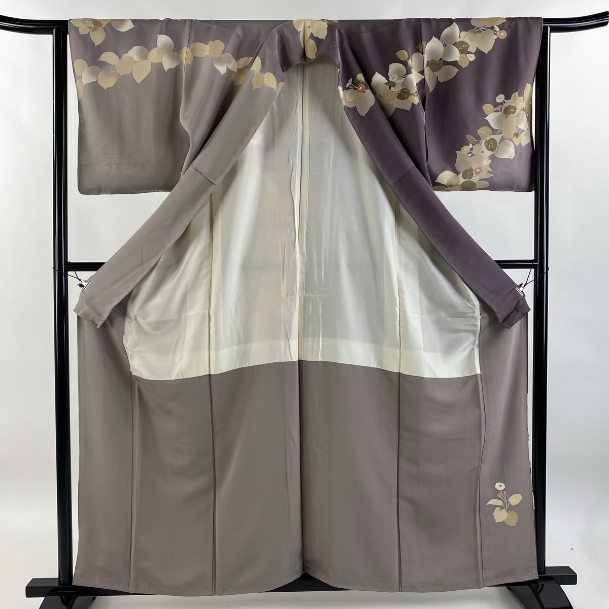 | 訪問着 優品 草花 金彩 染め分け 紫 袷 身丈162 裄丈62.5 S 正絹 【中古】 |