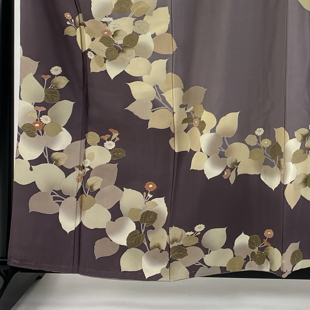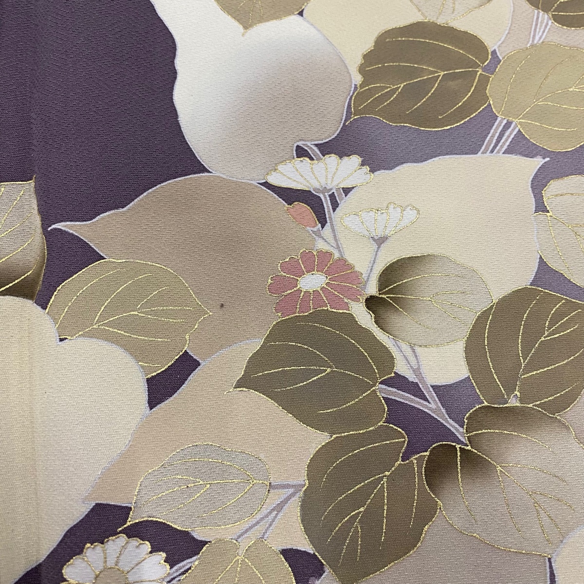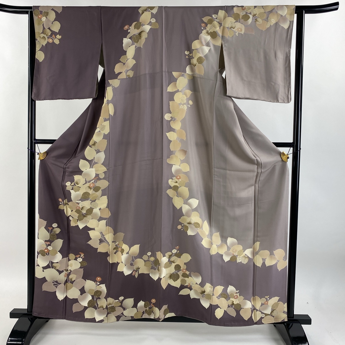 | 訪問着 優品 草花 金彩 染め分け 紫 袷 身丈162 裄丈62.5 S 正絹 【中古】 |