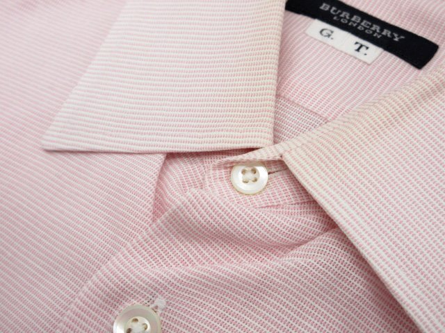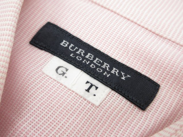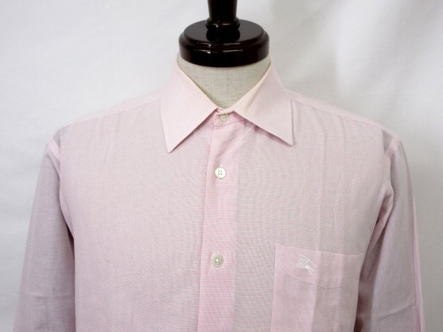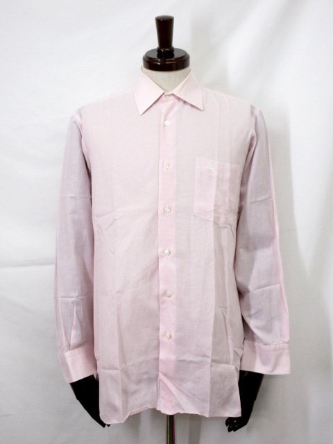 【バーバリーロンドン BURBERRY LONDON】セミワイドカラー ホースマーク刺繍 織柄 長袖シャツ (メンズ) Mサイズ相当 ピンク系 ◇38MK6119◇