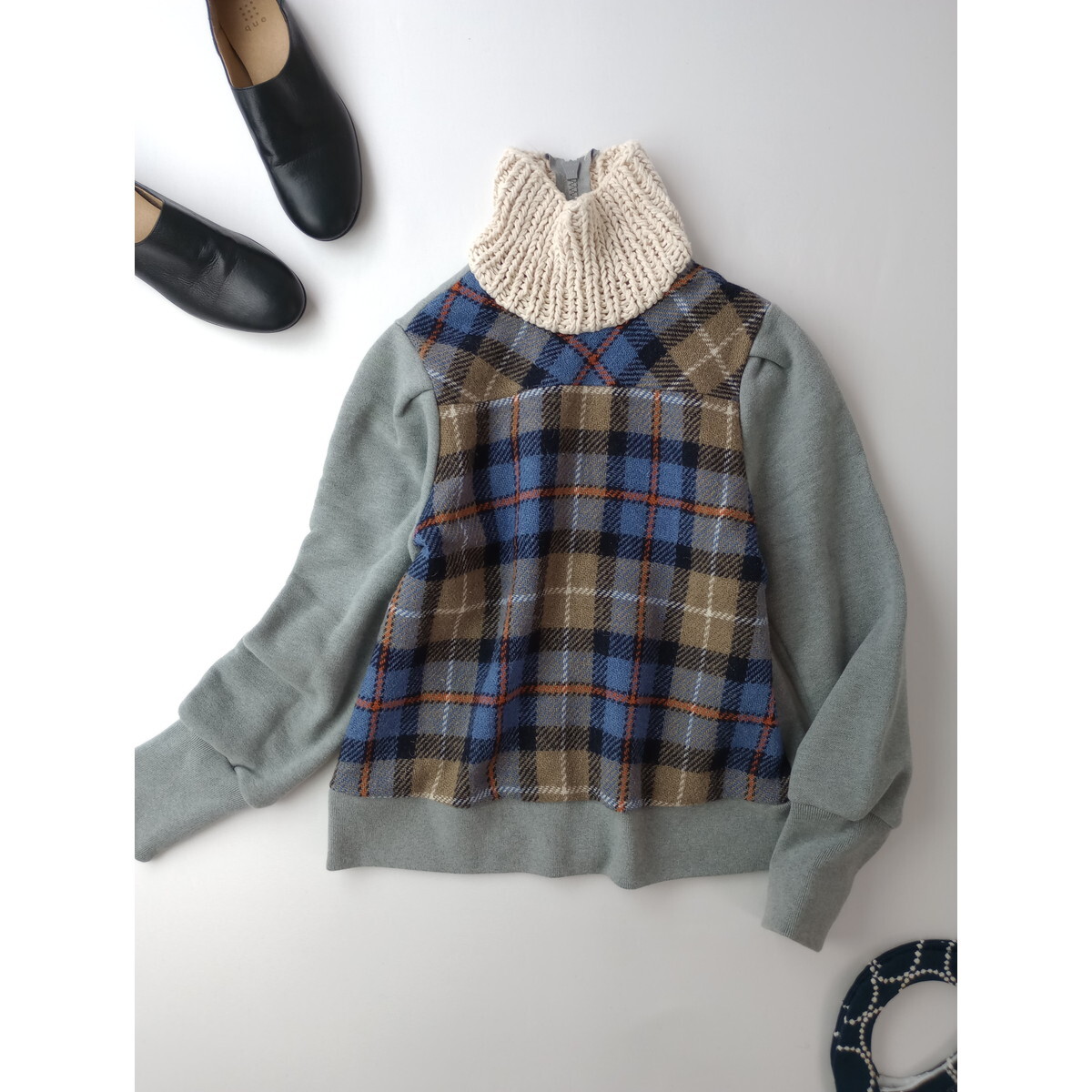 NATIVE VILLAGE ネイティブ ヴィレッジ 切り替え ブルゾン ジャケット ニット スウェット 長袖 トップス グレー チェック