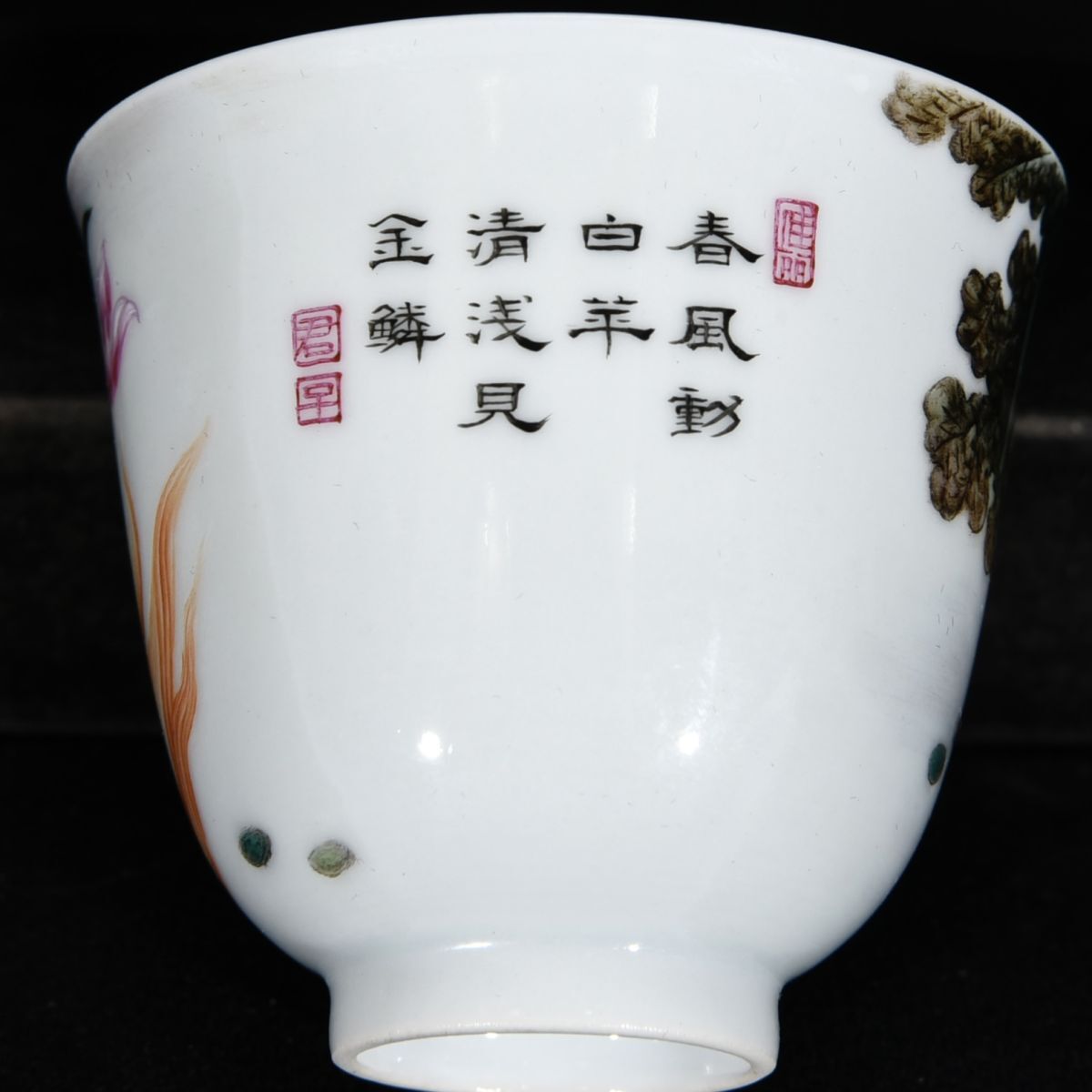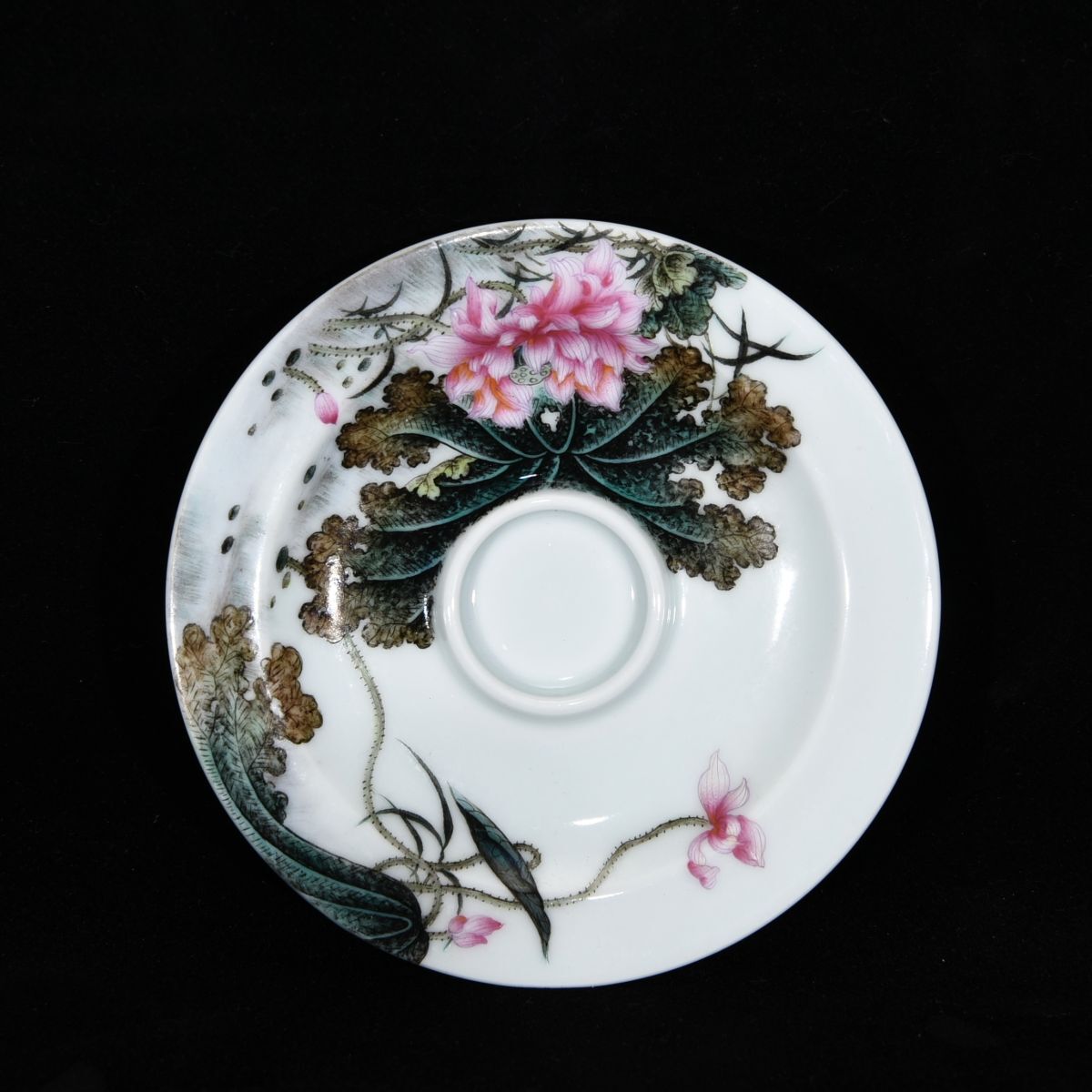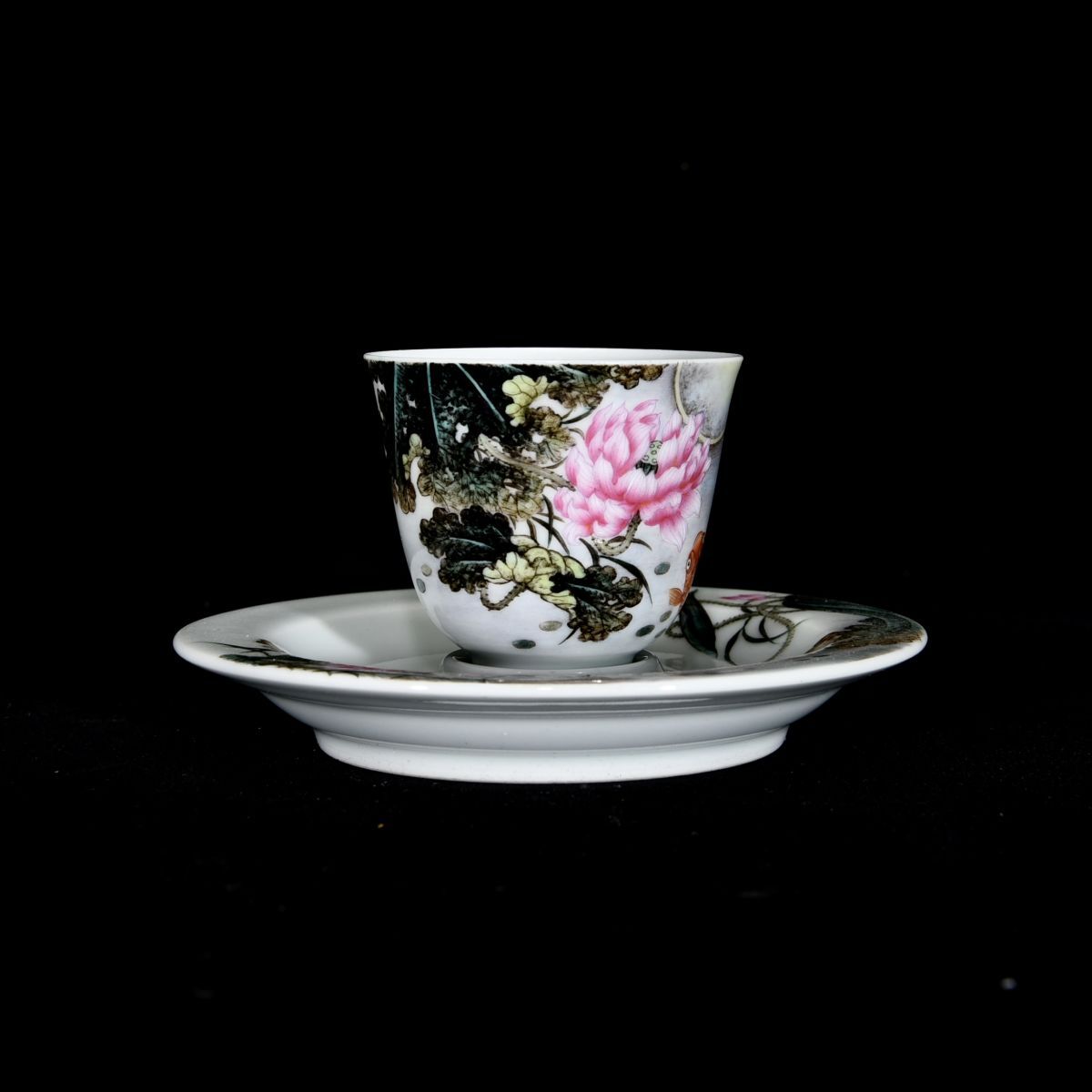 永し 清時代 大清乾隆年製 琺瑯彩 蓮花魚趣図茶杯 古陶磁器 陶芸 皿 中国陶瓷器 唐瓷 置物擺件 古美術品 古賞物 収集 旧家蔵出 中国唐物 A3