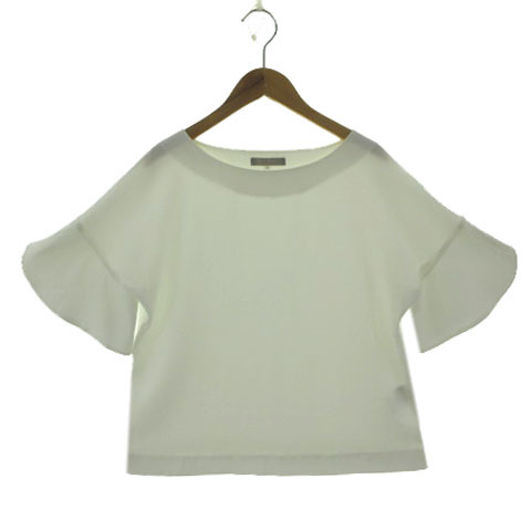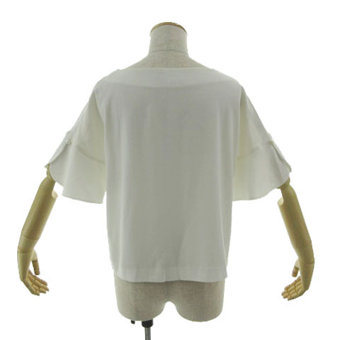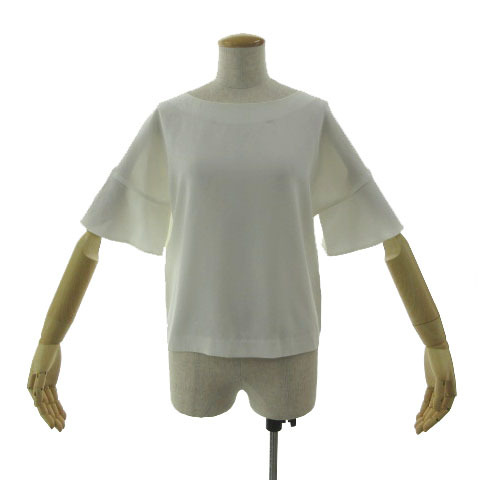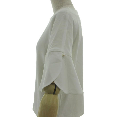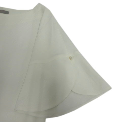 ナチュラルビューティー パーパス NATURAL BEAUTY Purpose フレアスリーブブラウス 018-8210605 ボートネック 五分袖 オフ白 34