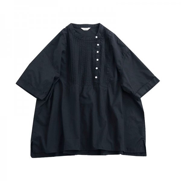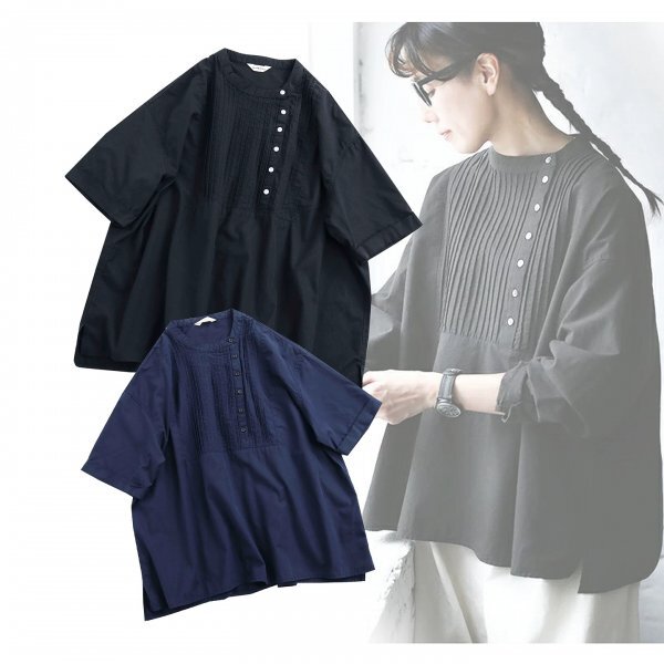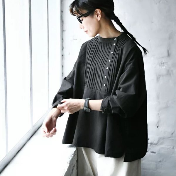 m 0705 チュニック トップス ふんわり ゆったり 楽ちん フリーサイズ ナチュラル 通気性手触り抜群 純色 スタンド襟 ブラック系