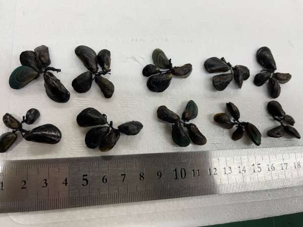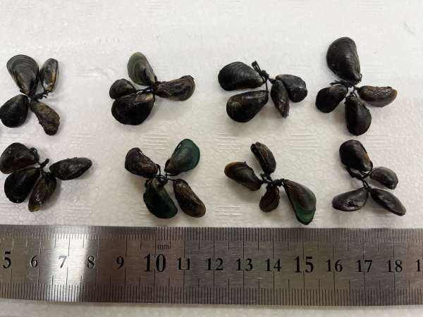 貝のサイズは、0.5cm~2cm前後のものを4個使用して作ってます。中はシリコンです。写真で判断して下さい。