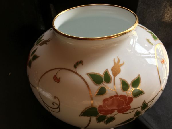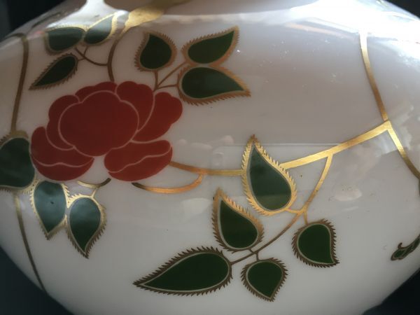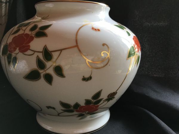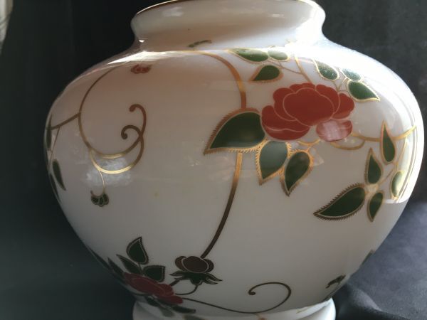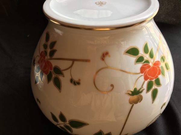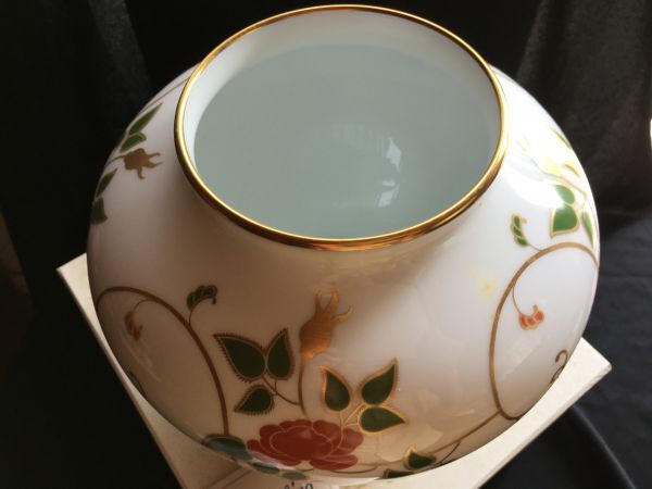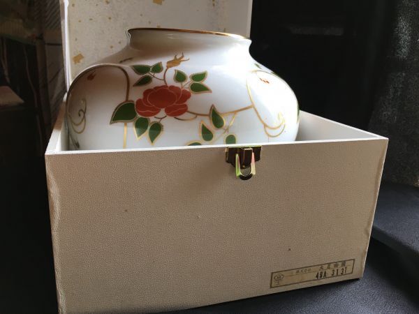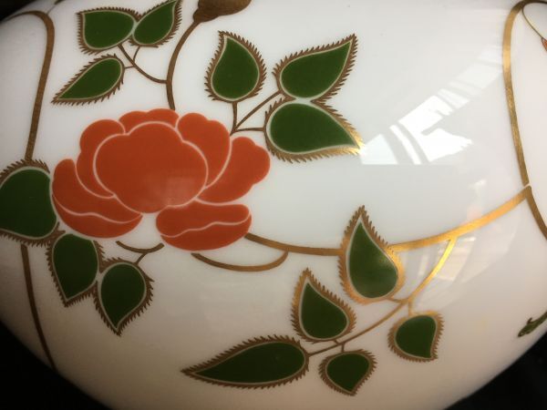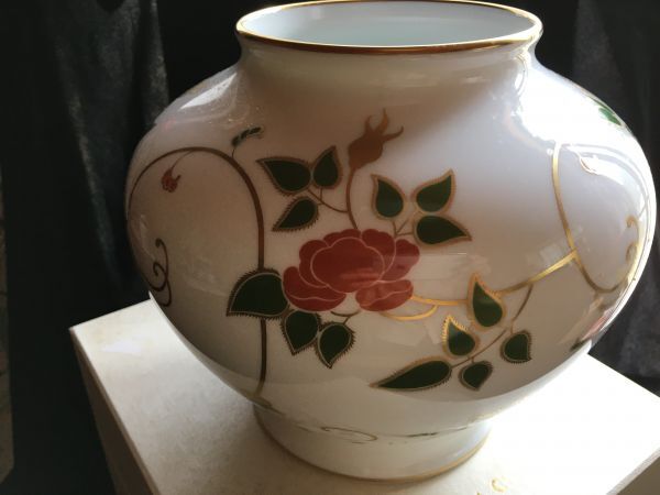 宮内庁御用達 大倉陶苑 白磁金彩薔薇絵 壺