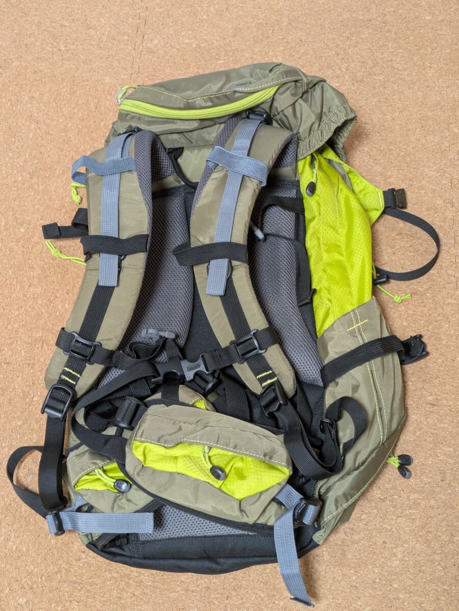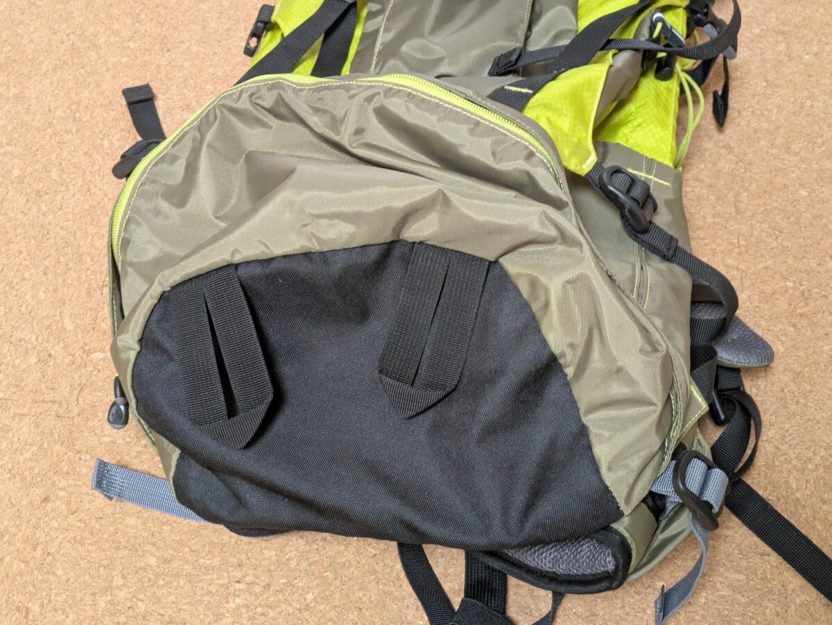 30Lの容量を持ち、底部に補強パネルが施された耐久性の高いバックパックです。