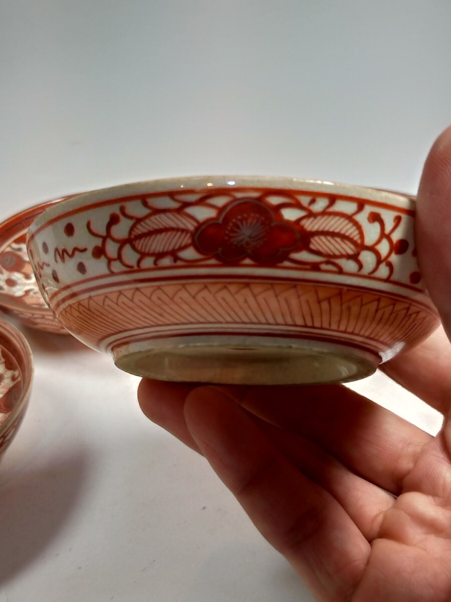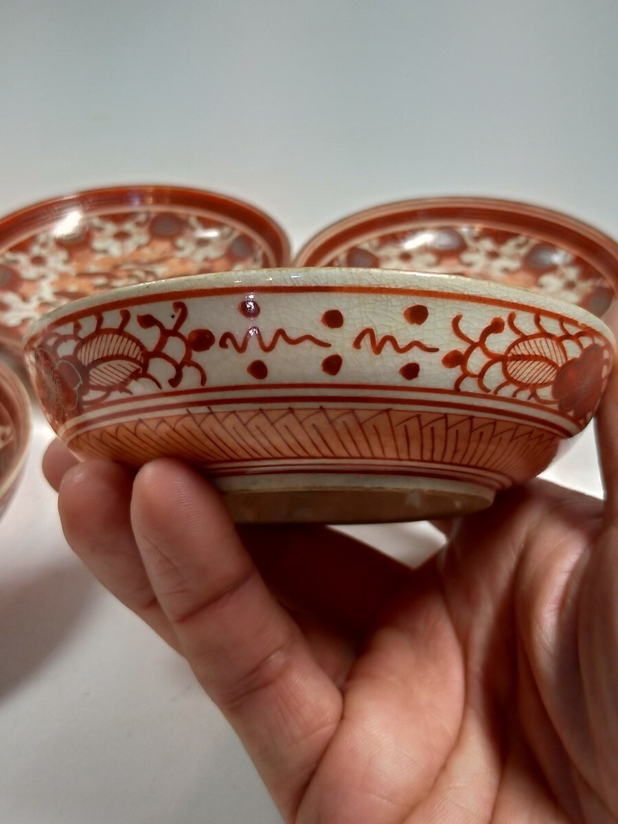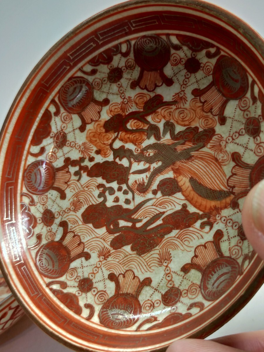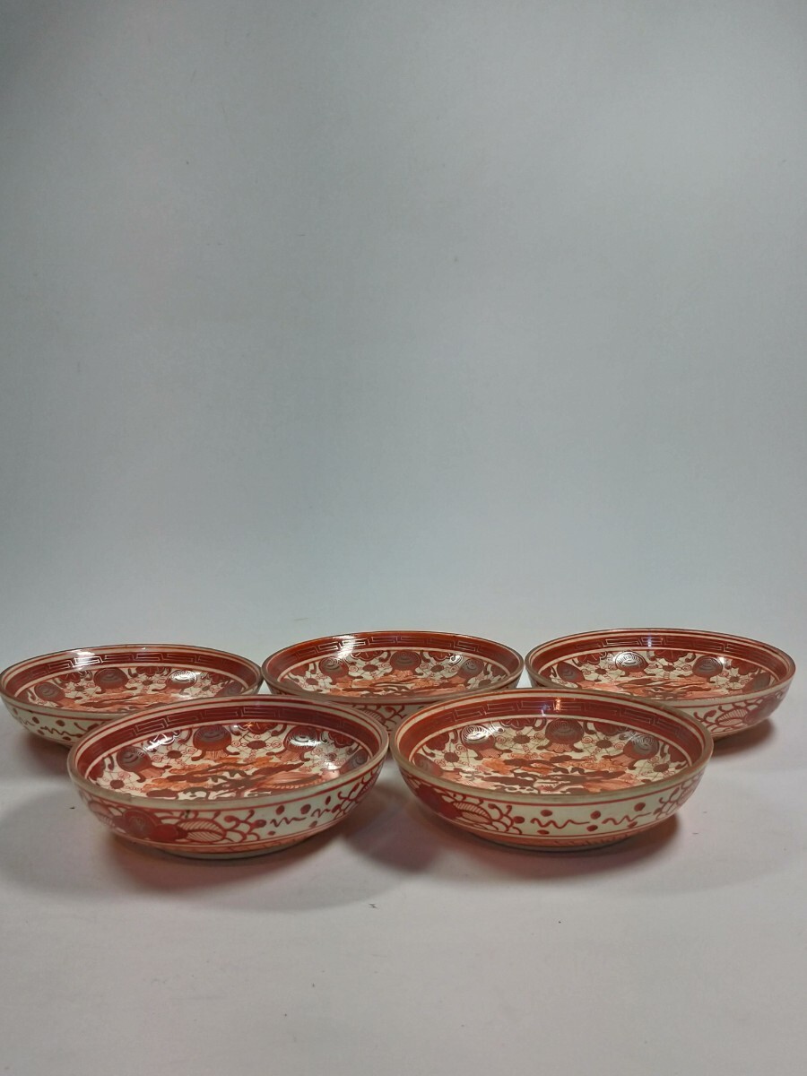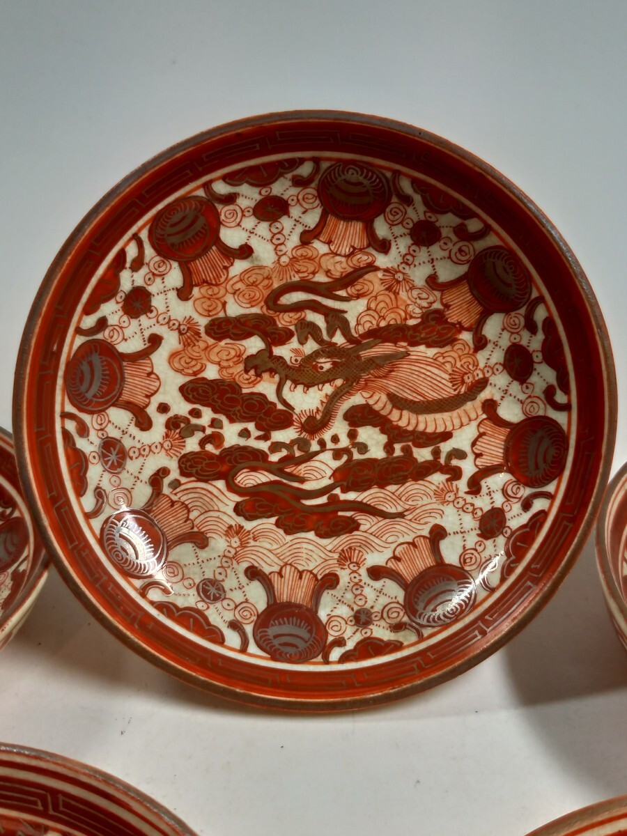 vmpd7-916-20 幕末~明治期 再興九谷 飯田屋八郎右衛門手 赤絵雲龍瓔珞文組皿五客 細密絵付