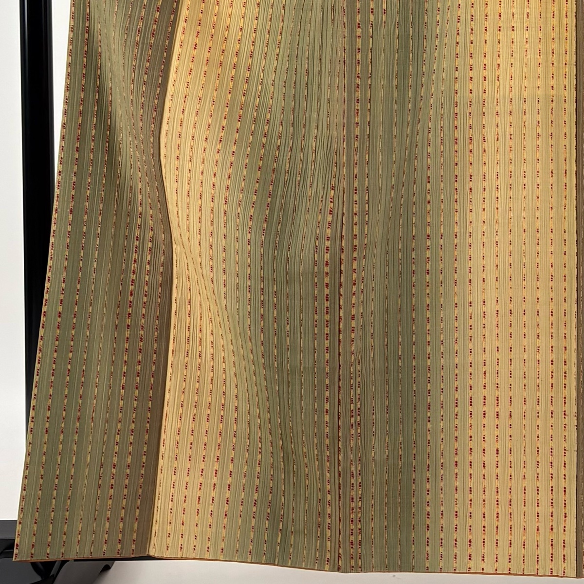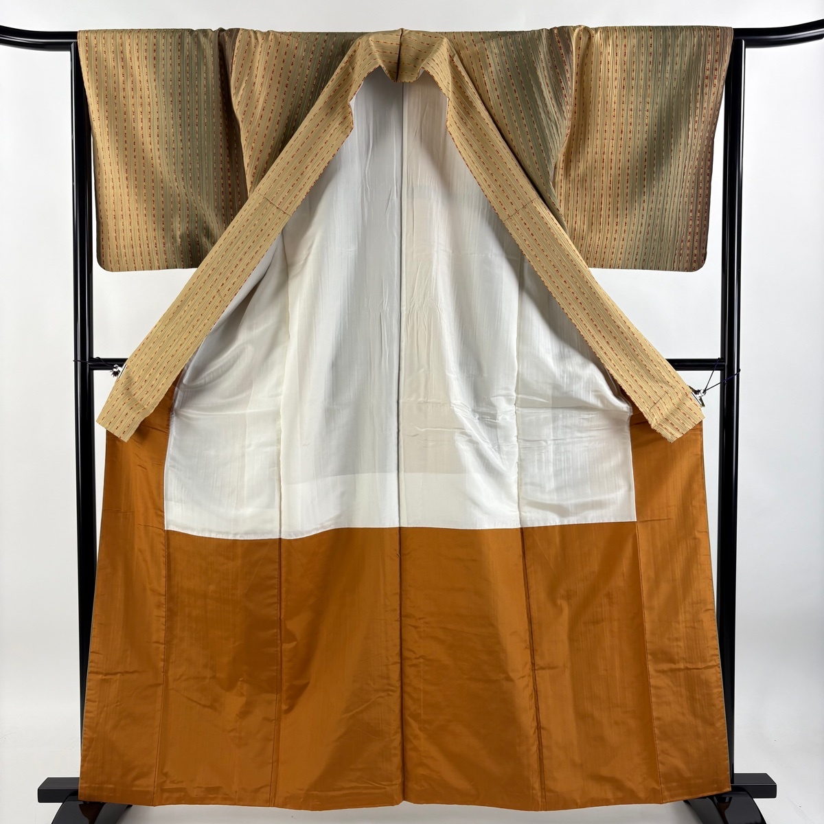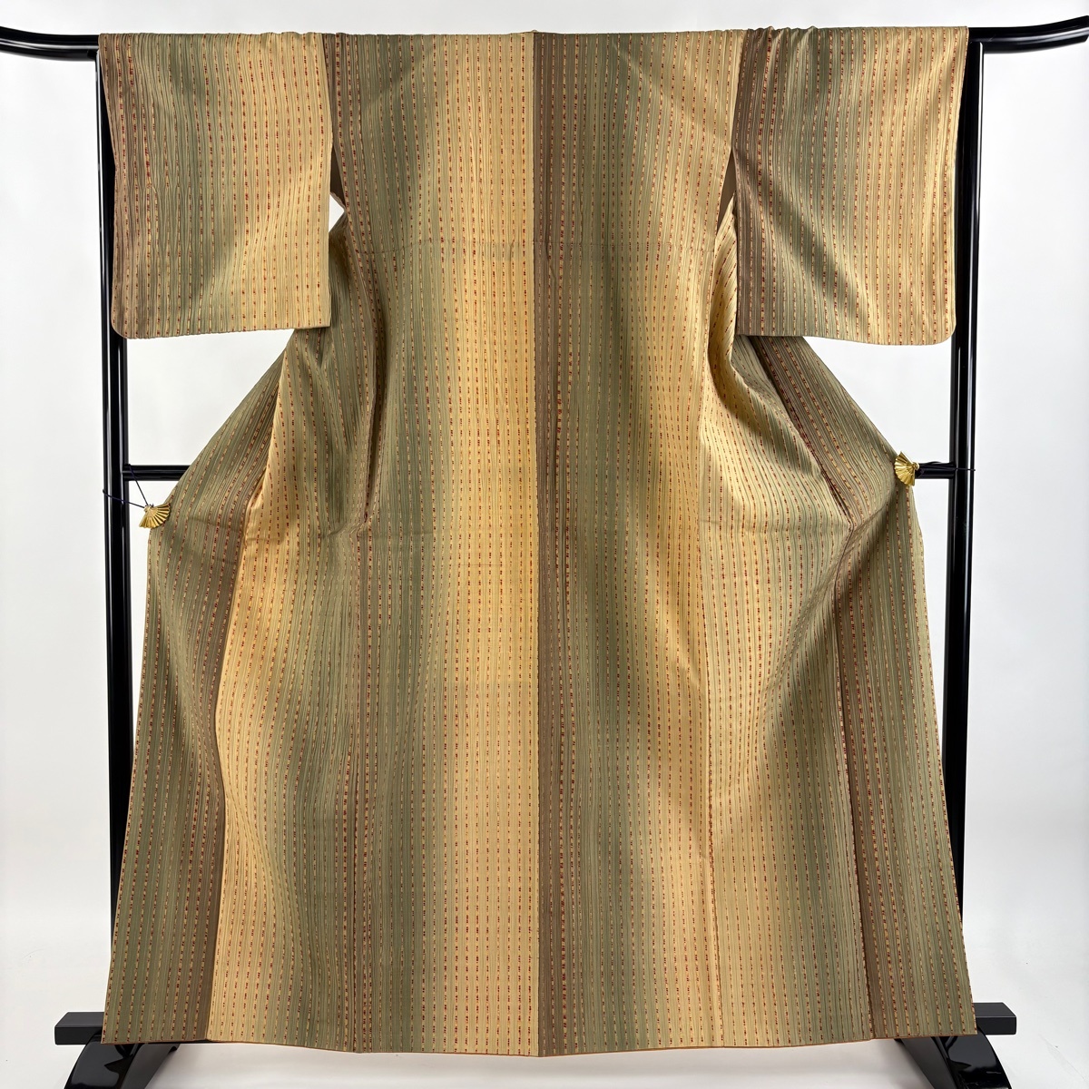 | 小紋 秀品 縦縞 ぼかし 灰緑 袷 身丈162 裄丈66 M 正絹 【中古】 |