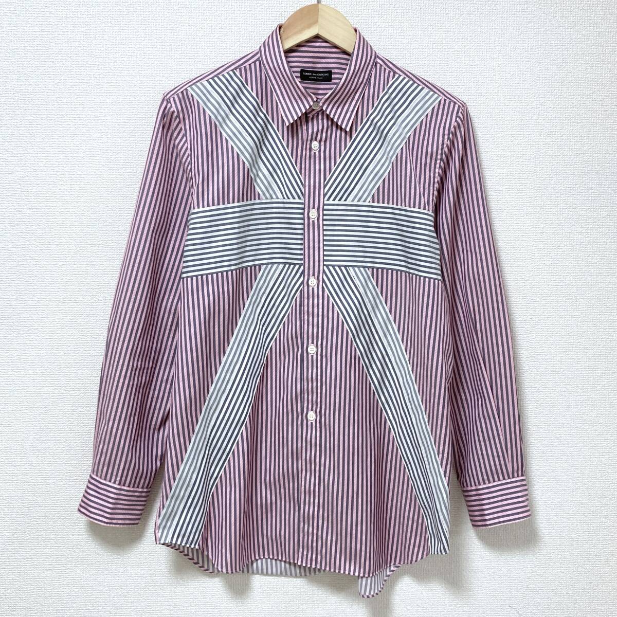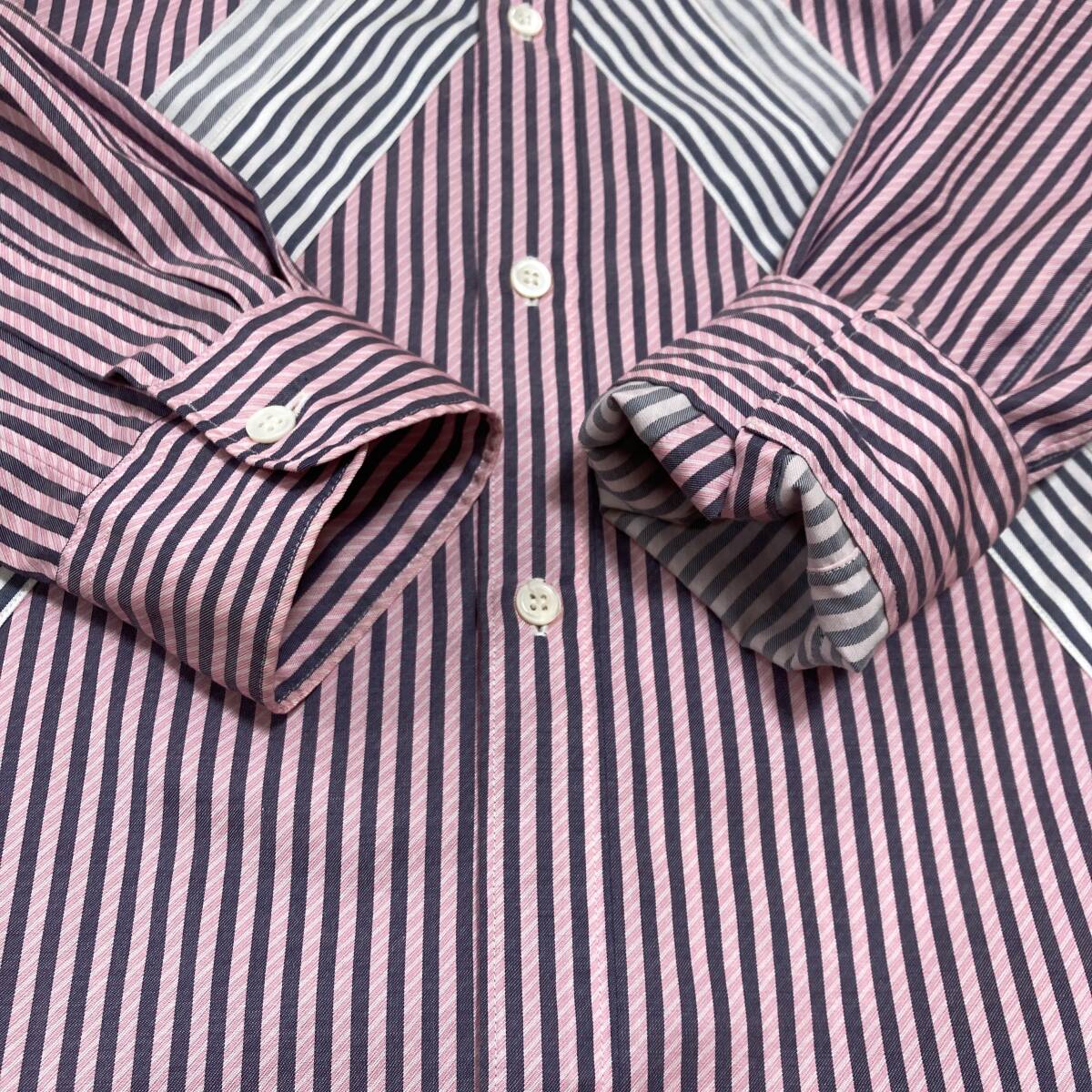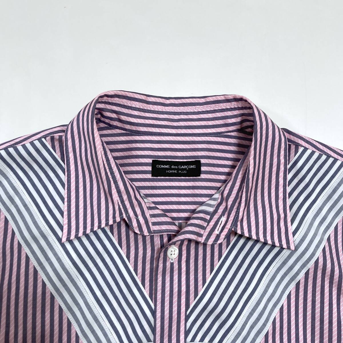 80s 90s COMME des GARCONS HOMME PLUS ストライプ ユニオンジャック 長袖 シャツ ピンク × グレー