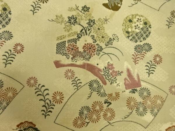 ys7514696; 地紙に花模様織り出し丸帯帯側(材料)【アンティーク】【着】
