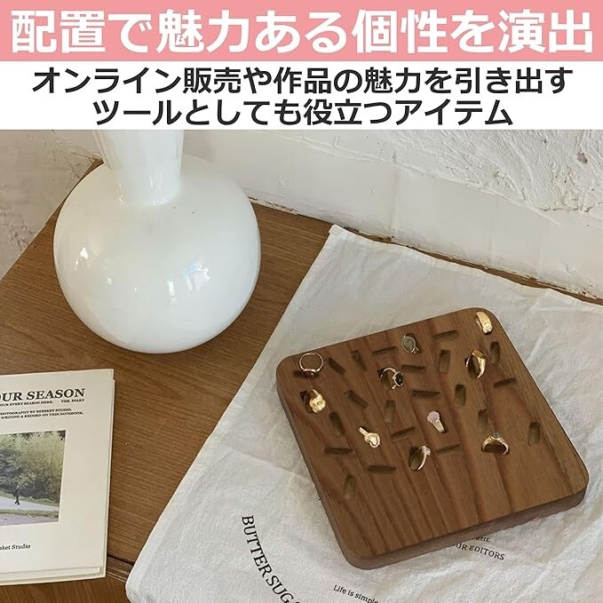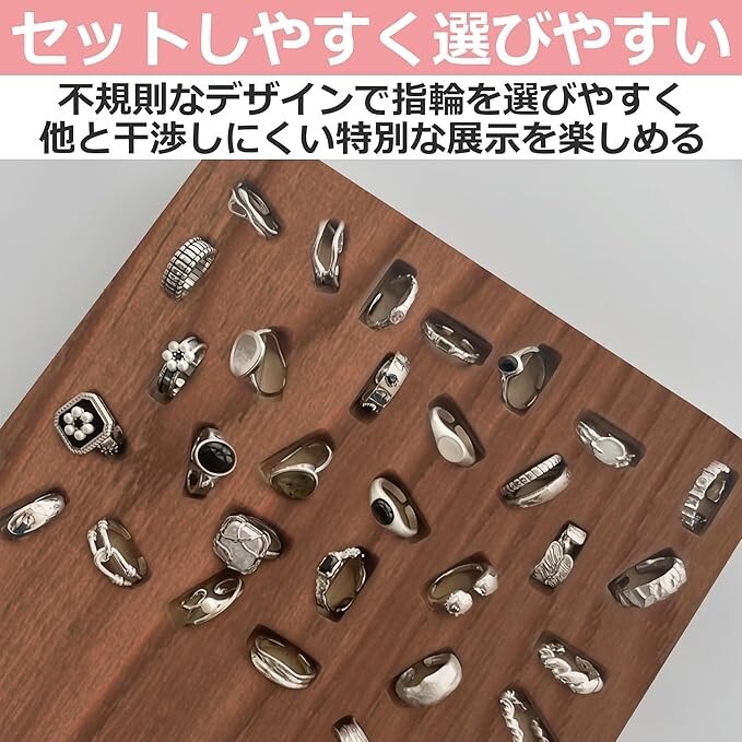 セットしやすく選びやすい:不規則なデザインは指輪を選びやすく他と干渉しにくいのが特徴です。お気に入りのリングを飾っておくだけで、特別なアイテムを展示している感覚を楽しめます。インテリアと調和し、リズム感のある展示を楽しめるのも魅力のひとつです。