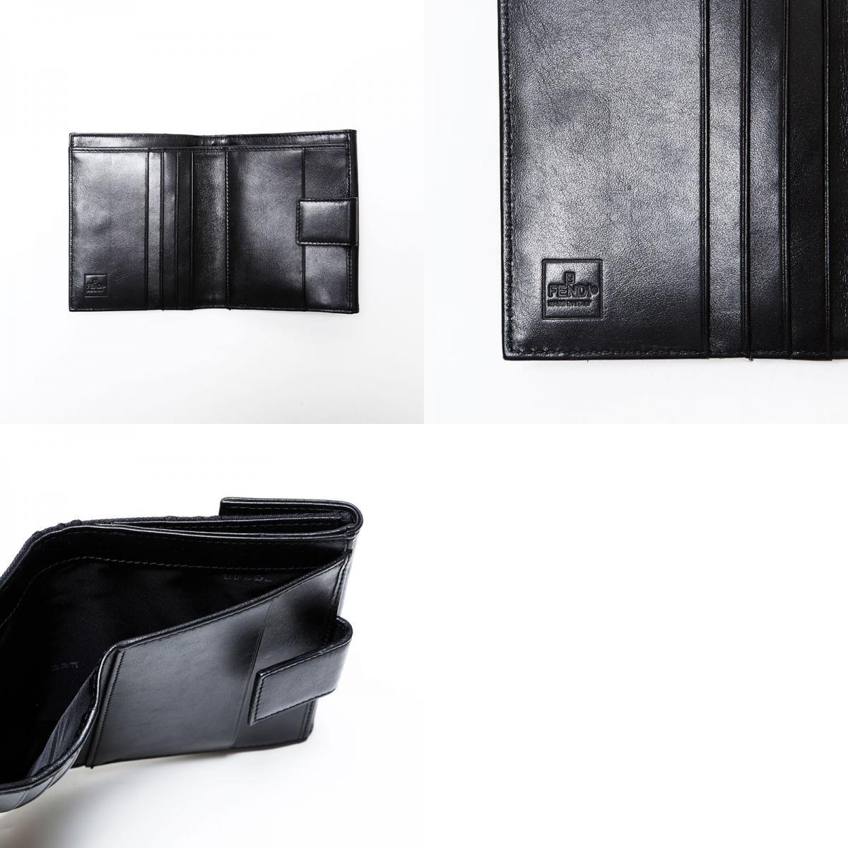 極美品 FENDI ズッキーノ キャンバス 二つ折り財布 ブラック