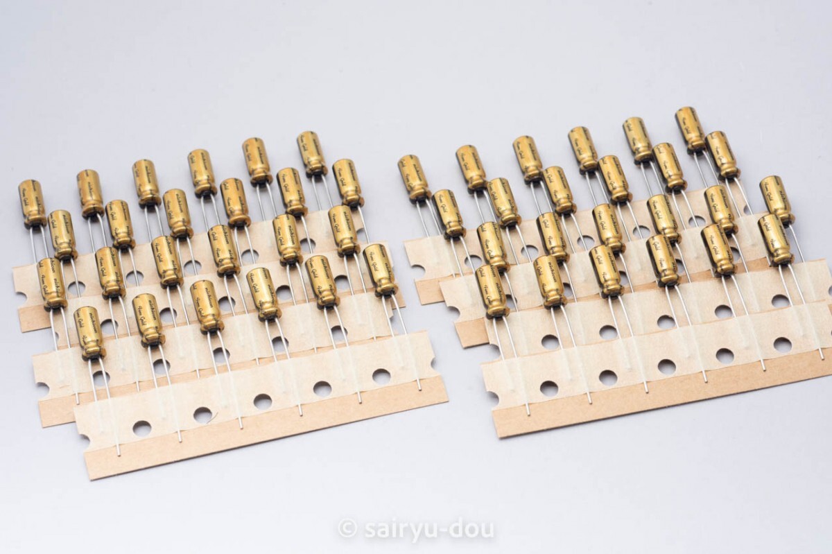 ニチコンのオーディオ用ハイグレード標準品・電解コンデンサ「FG(ファインゴールド)」カットテープ仕様です