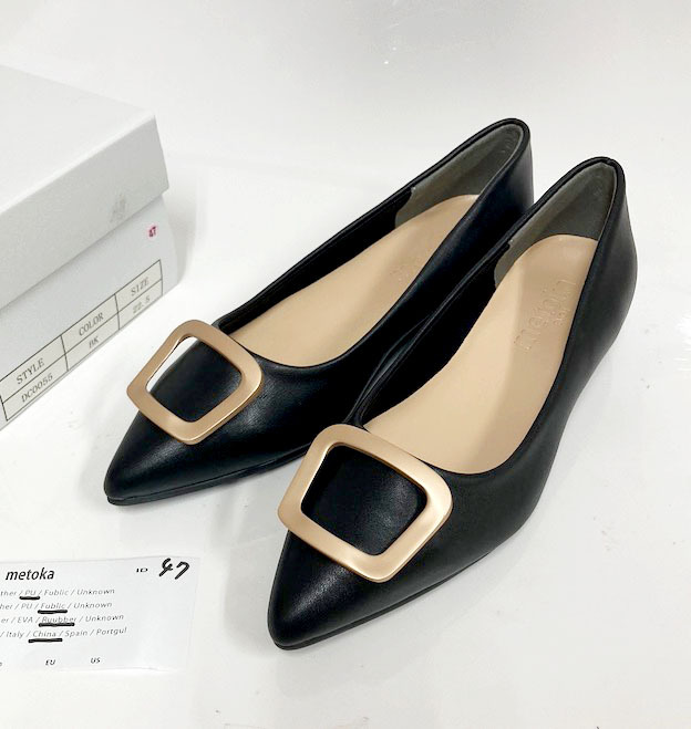 新品/22.5cm/EVOL metoka フラットシューズ ゴールドバックル /管47