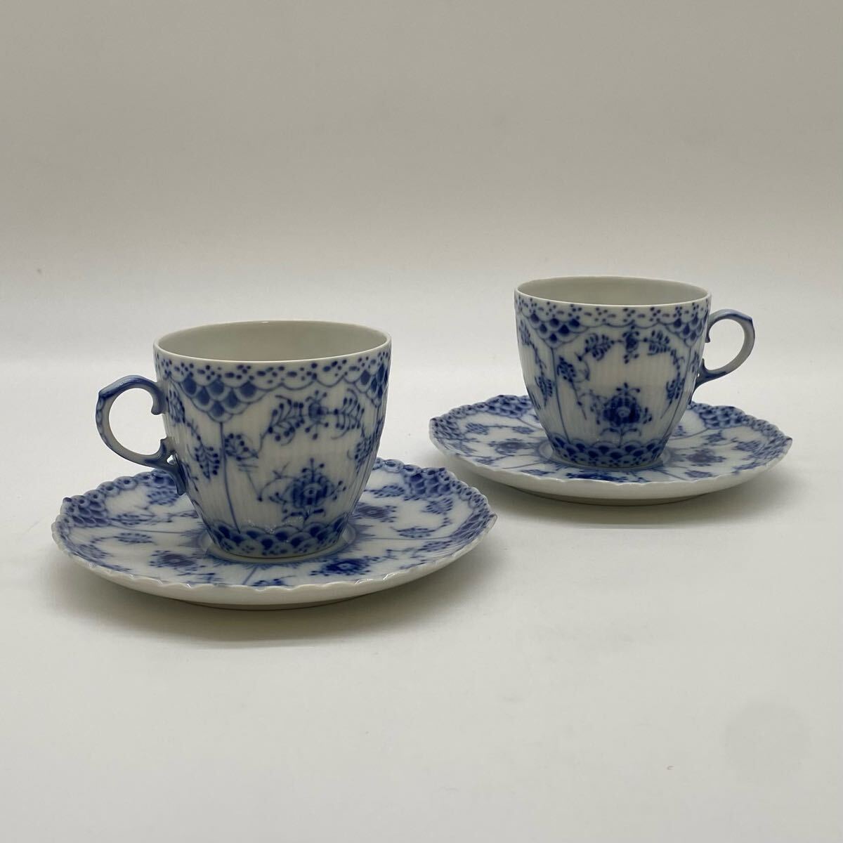 ● ROYAL COPENHAGENのブルーフルーテッド フルレース カップ&ソーサー 2客セット になります。