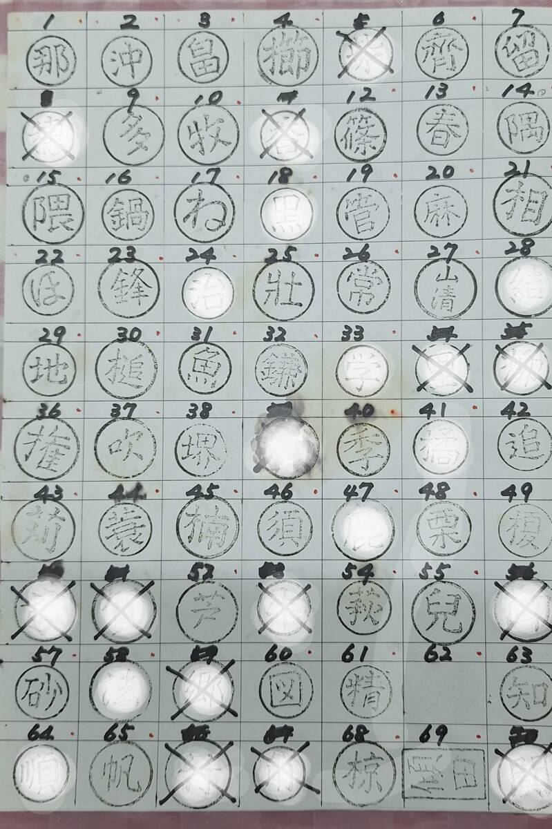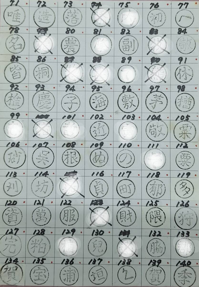 未使用在庫品です。一本の価格です。画像3、4枚目の中で落札後番号をお知らせください。複数も可です。印のあるマスの幅は3cmです。ご自分の道具などに、しるしとしていかがですか。火(バーナー)等で炙って押し付けるだけです。 白で見えなくなってる所は、販売済です。二文字の焼印は2500円になります。