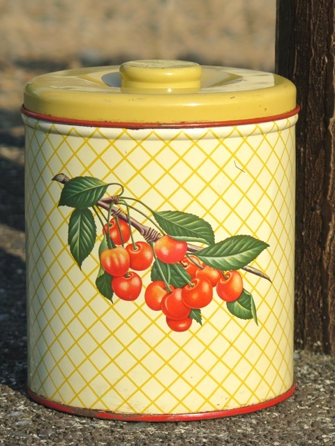 '50s Decoware Tin Metal Canister Made in USA. ビンテージ デコウエア USA キャニスター チェリー