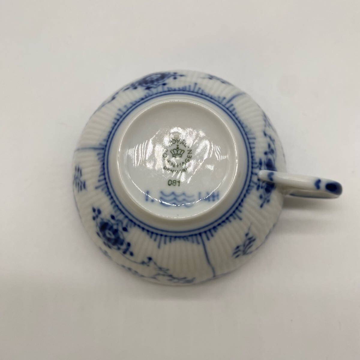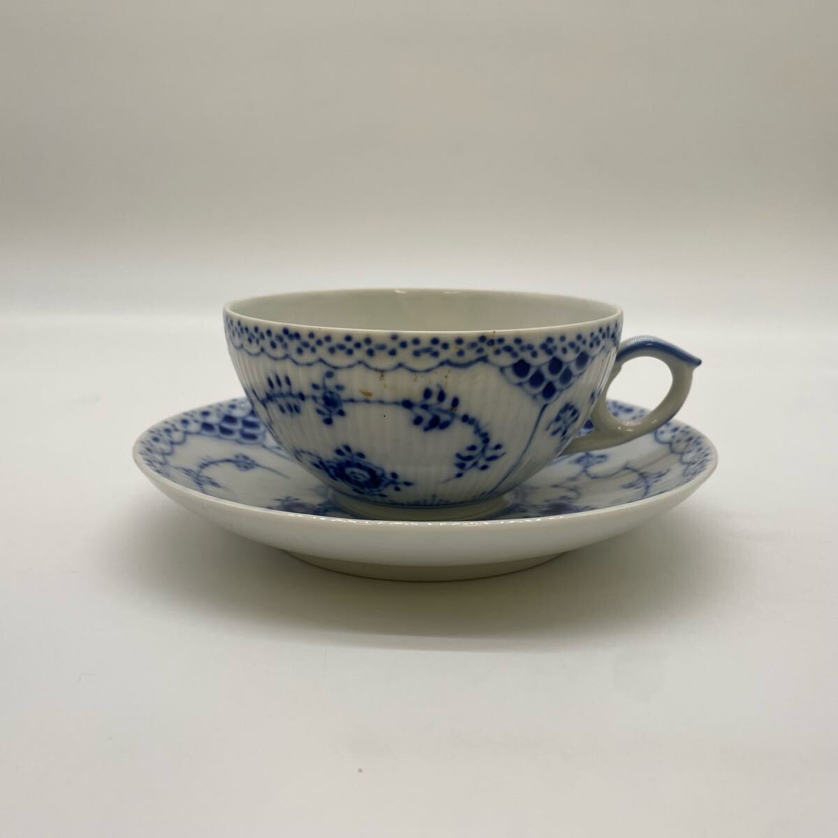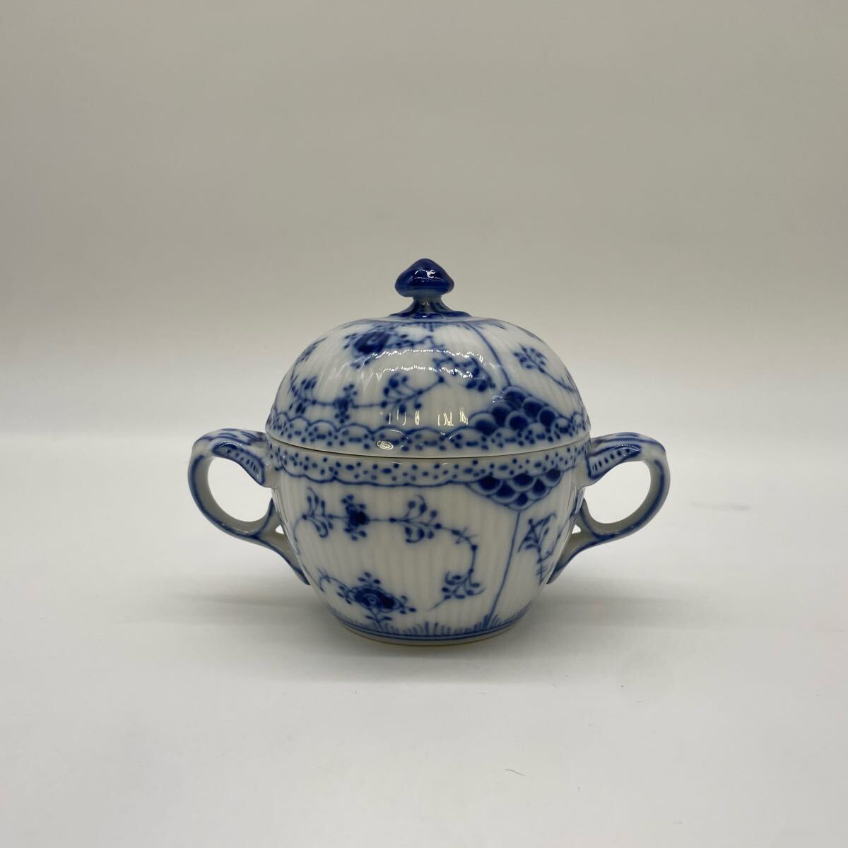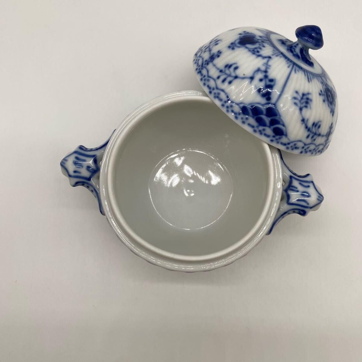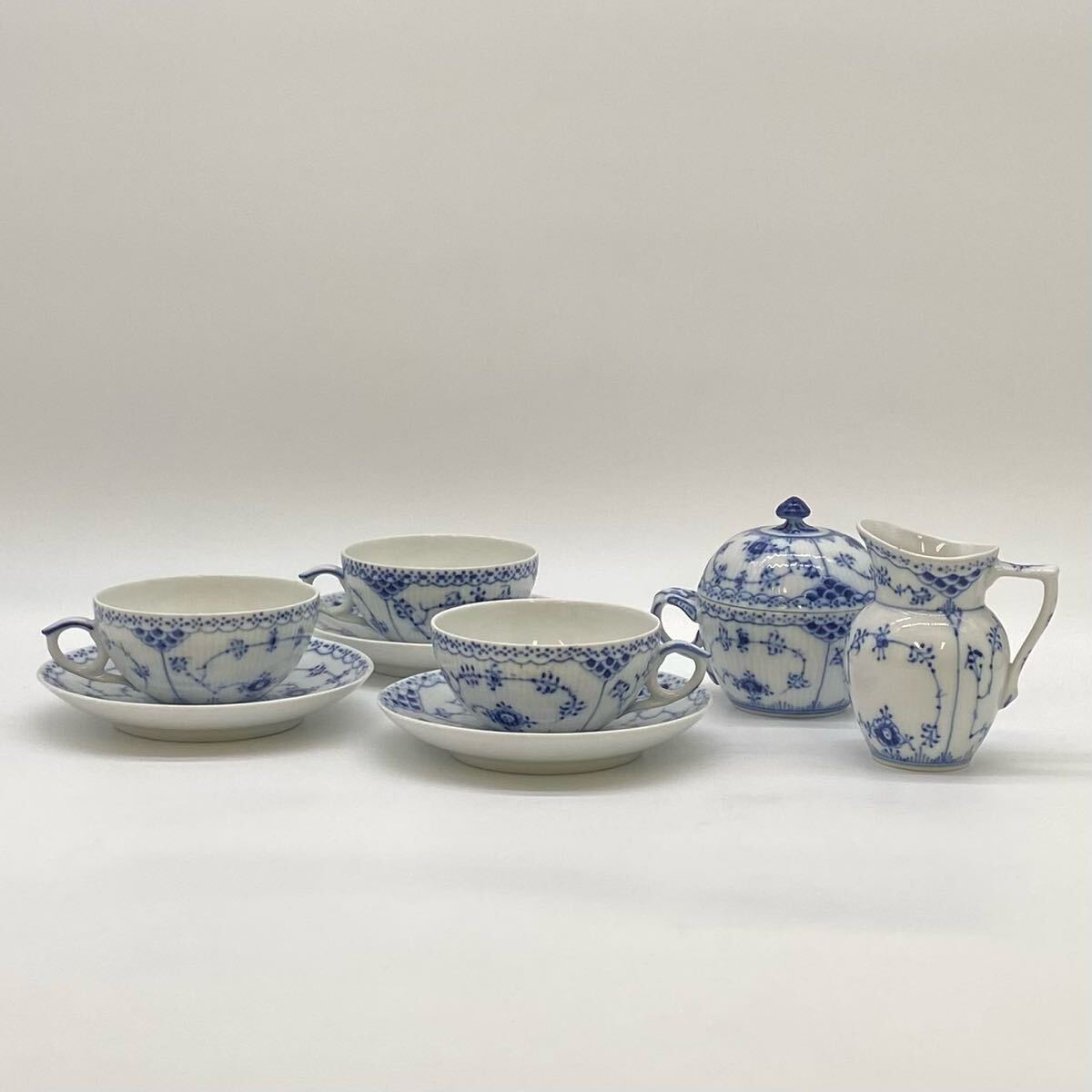 ● ROYAL COPENHAGENのブルーフルーテッド ハーフレース カップ&ソーサー3客と、シュガーポットとクリーマー のセットになります。