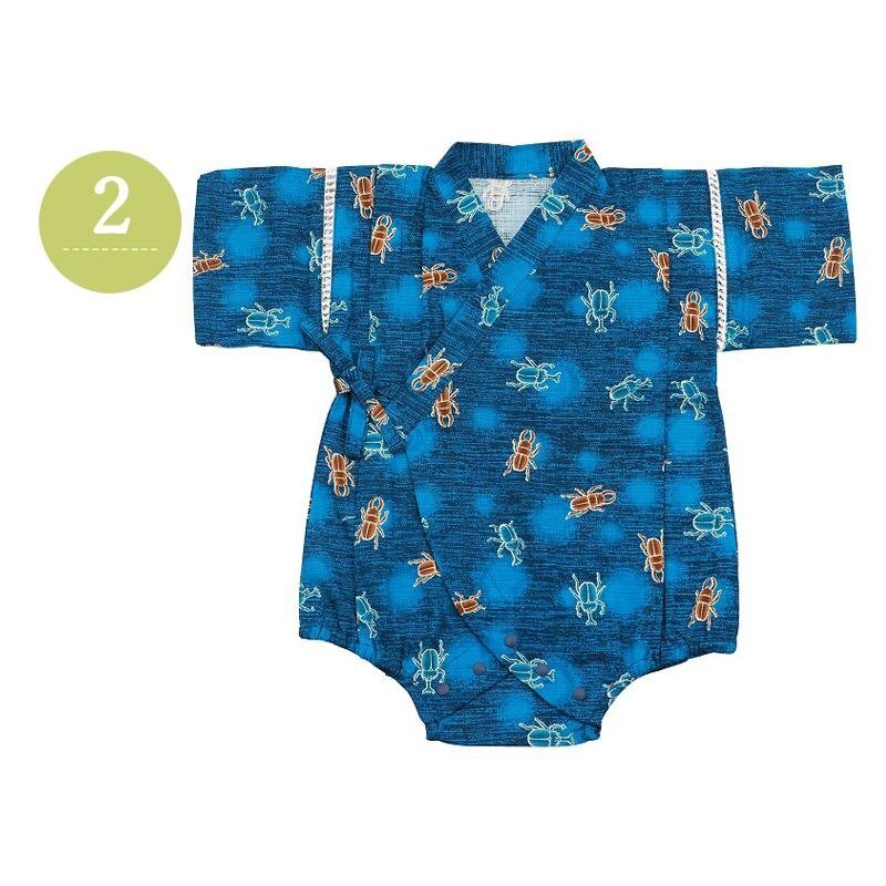 大特価◆男の子用◆甚平 ロンパース 綿素材 k-209 (2カブトムシ青・80cm) 【お祭り 涼しい イベント 子供 花火大会 和装】