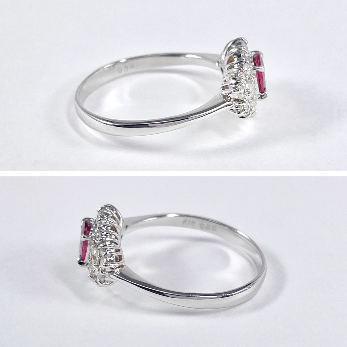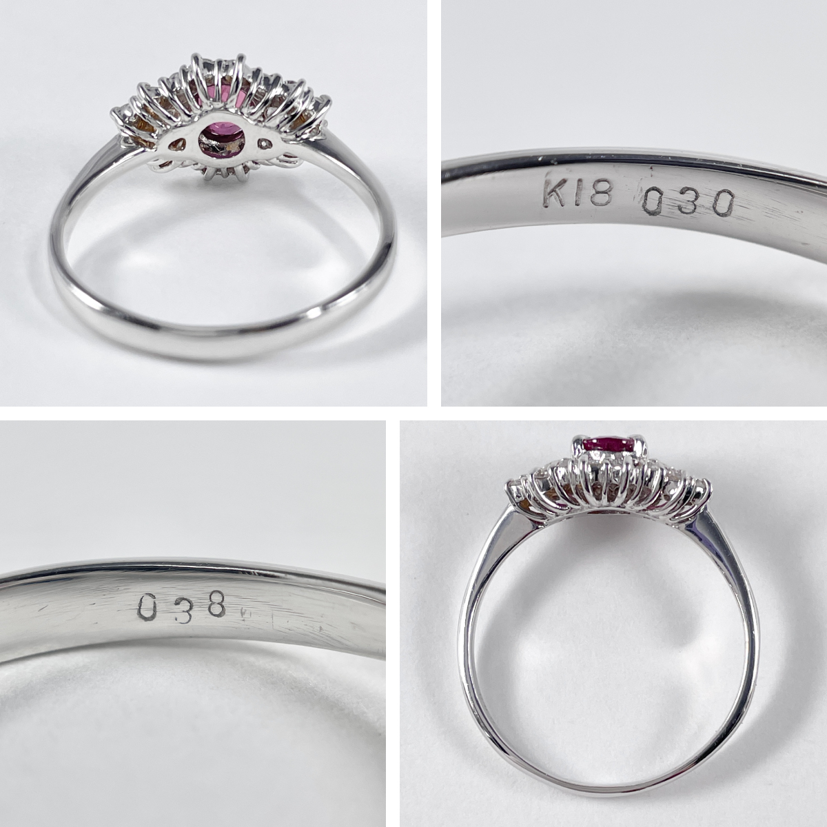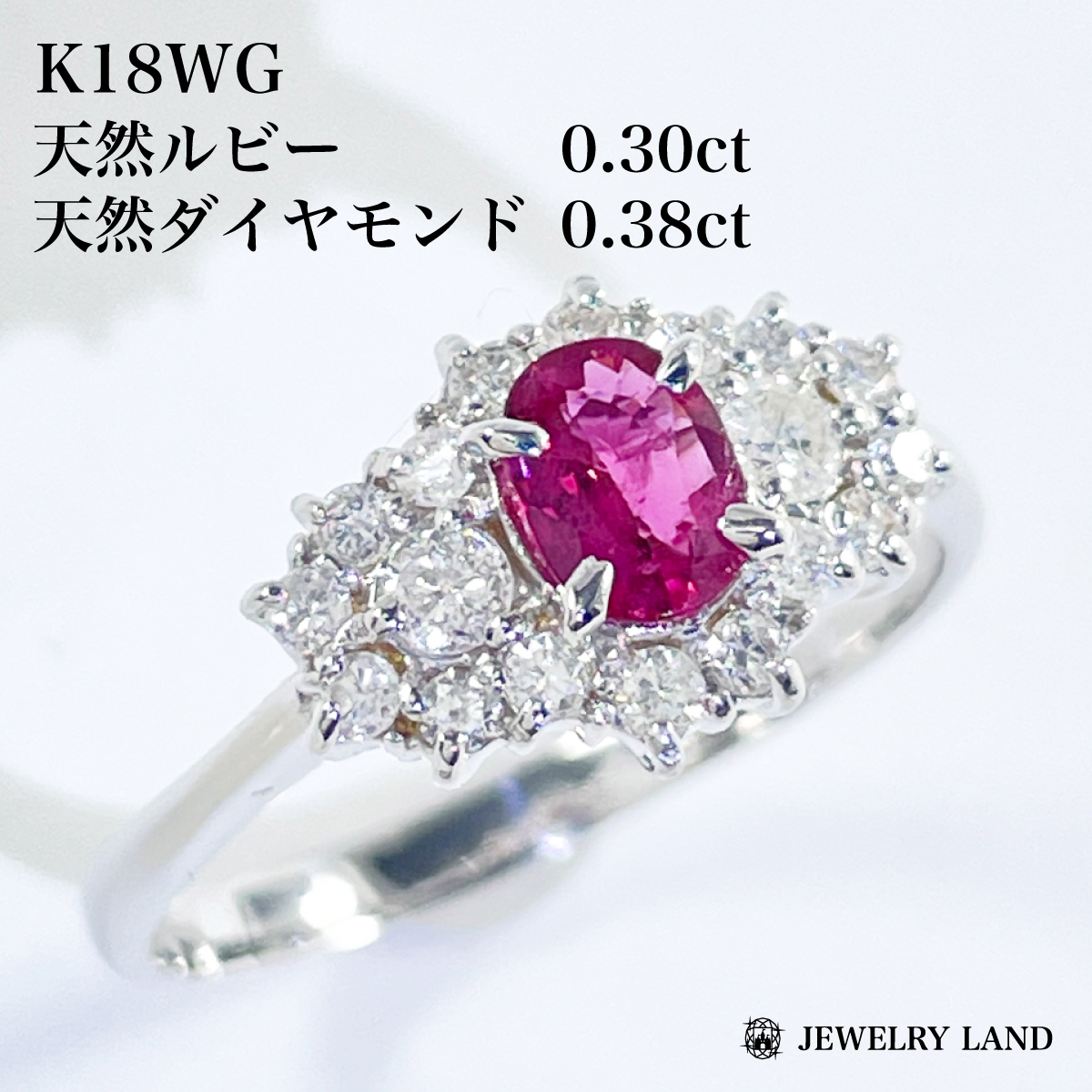 K18WG 天然ルビー 0.38ct 天然ダイヤモンド 0.30ct リング