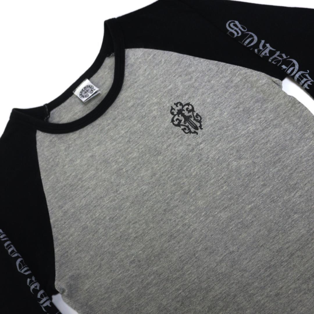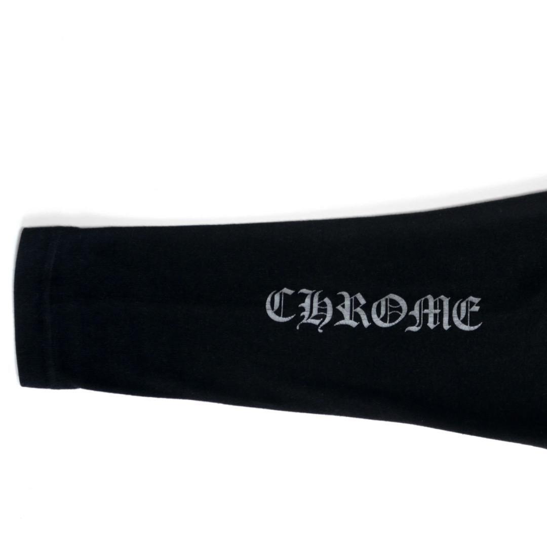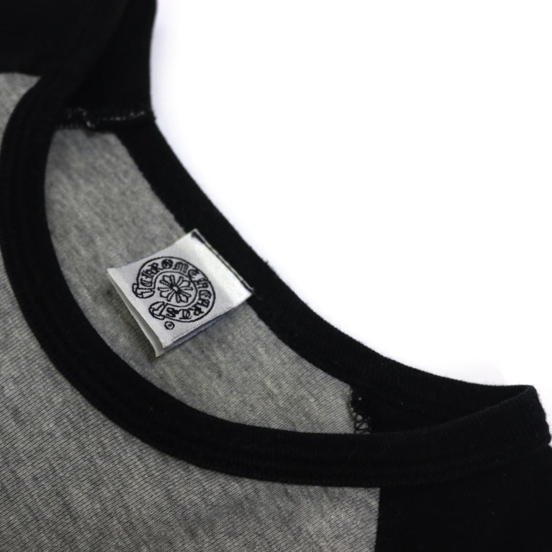 ご覧い頂きまして有難うございます。 Chrome Heartsの歴史は・・ 1988年にリチャード・スターク(Richard Stark)達がシルバーアクセサリー・ジュエリーのブランドとして設立したのが、クロムハーツ(Chrome Hearts)です。 革製品のセールスを生業としていた頃、彼はハーレーダビッドソンで全米中をセールしてまわっていました。 その時に同業者のジョン・バウマン(John baumann)と知り合って意気投合し、共同で事業を始めるようになります。 2人はそのビジネスの傍らで、既存のメーカーのバイク用ファッションにどうしても満足できず、自分たちが身に着けたいと思う物を自分たちで作りたいと思うようになり、やがて、彫金職人であったレナード・カムホート(Leonard Kamhout)を巻き込んで、本格的にバイク用ファッションのビジネスをスタートさせました。 これがいわゆるクロムハーツを創業したとされる3人の出会いです。 もとはレザークラフトから始まった弱小ブランドですが、今現在のクロムハーツの核になるアイテムはシルバーアクセサリーであり、そのルーツとなるのが天才彫金師レナード・カムホートが存在です。 レナード・カムホートの存在が無ければ現在のクロムハーツの成功と繁栄は有り得ません。 クロムハーツのコンセプトは「唯一無二の存在」 最高峰の彫金技術が創りあげる骨太なラグジュアリー 他の追従を許さない独自のを展開するクロムハーツが手がけるレザーアイテムは、無骨でありながらもシックでゴージャス。 アイテムは07年にクロムハーツ東京で購入した 限定Tシャツに成ります。 七分袖のラグランスリーブで、灰色と黒色の袖の切返しが有り、袖の左右にはクロムハーツ「CHROME」&「HEARTS」プリント、腰部は定番のCHスクロールラベルと表面の胸元にはワンポイント「ヴァインダガー」のプリントで構成された希少なヴィンテージ ロング Tシャツです。 シックなカラーのTシャツですので、着る物を選ばず どんなコーディネトにも対応してくれる便利なアイテムです。 表面は胸元には「セメタリークロス」プリントで構成された希少なヴィンテージ ロング Tシャツです。 シーズンを問わず着用できるモデルなので、クロムハーツのアパレルアイテムの中でもひと際は人気の商品にさらに限定感をだしたレアな廃盤品です。 アイテムはクロムハーツの荒々しい歴史に名を残す中期モデルの希少なアイテムです。 特選された代表モチーフは、時代に流される事なくクロムハーツの創業理念と共に完成されました。 キング・オブ・シルバーの名に相応しい風格とバイカーファッションをルーツとするワイルドさを兼ね備えた他にはない魅力的なアイテムは、最盛期のクロムハーツを代表する柄で、多くのファンを惹きつけてやみません。 | |||