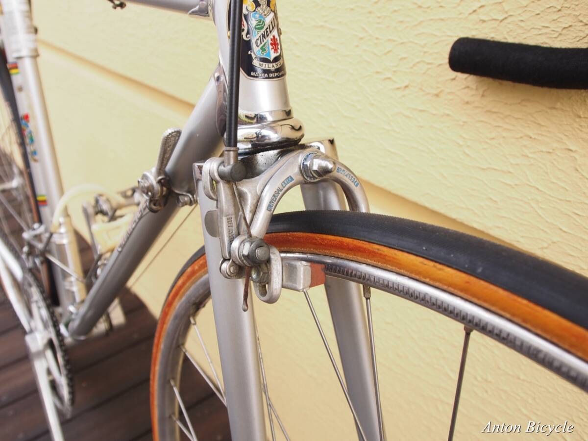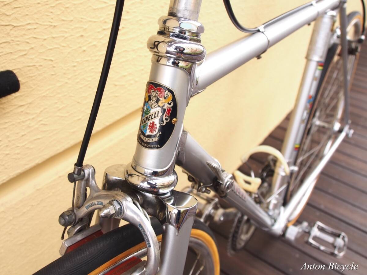 ご覧頂きありがとうございます♪ お客様のコレクションからの委託販売です。 60年代末~70年ごろのCinelli こちらはきっちりリペイントされた個体となります 質感よくペイントされており雰囲気Good よく見るクリアーベタ塗りのテカテカ仕上げではありません。 これやってしまうと雰囲気全く異なってきますね。。 デカールもクオリティ高いものが使われています。 目立つような傷はなく、壁掛けスタンドの跡が少しあるくらいでしょうか 各部クロームも良い状態を保っています その他詳細はお写真でご確認ください ハブは人気のカンパラージ ハンドルにはcinelli定番の鉄仮面 フォークはmodelBいかり肩を採用し、なで肩の若干スポーティな印象とは異なり よりビンテージ感を醸し出してくれています 以前のオーナーはこの雰囲気がお好みだったのでしょうね^^ タイヤはご納車前に新品に交換いたします。 週末ごとの集荷発送となっておりますので、 作業具合やタイミングによっては発送まで1〜2週間お時間いただきます。 車両のお写真は下記にたくさん掲載しておりますので どうぞご覧下さいませ。 写真はこちら アドレス:https://drive.google.com/drive/folders/1fj3JEVqjZ8oLoJFqkTFicR2t9fkqDbP1?usp=sharing もしくはこちら