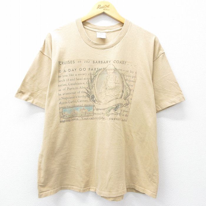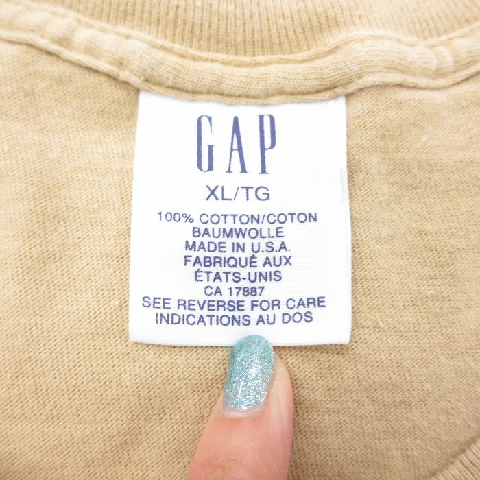 【商品名】 XL★古着 ギャップ GAP 半袖 ビンテージ Tシャツ メンズ 90年代 90s 男性 メッセージ コットン クルーネック USA製 ベージュ【spe】