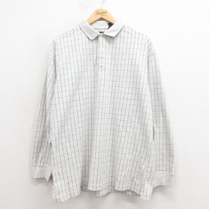 【商品名】 L★古着 GANT 長袖 ポロ シャツ メンズ 90年代 90s 鹿の子 コットン 白系 霜降り他 チェック