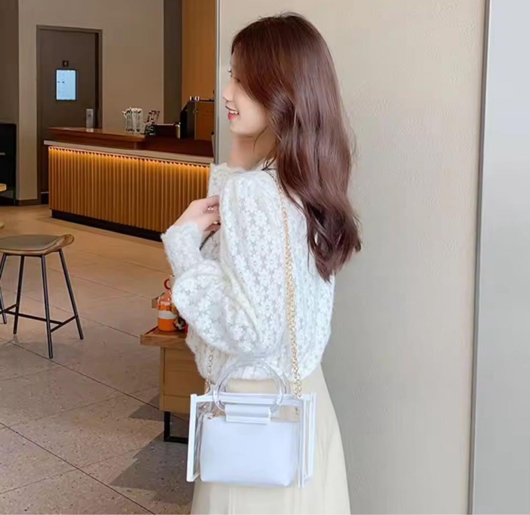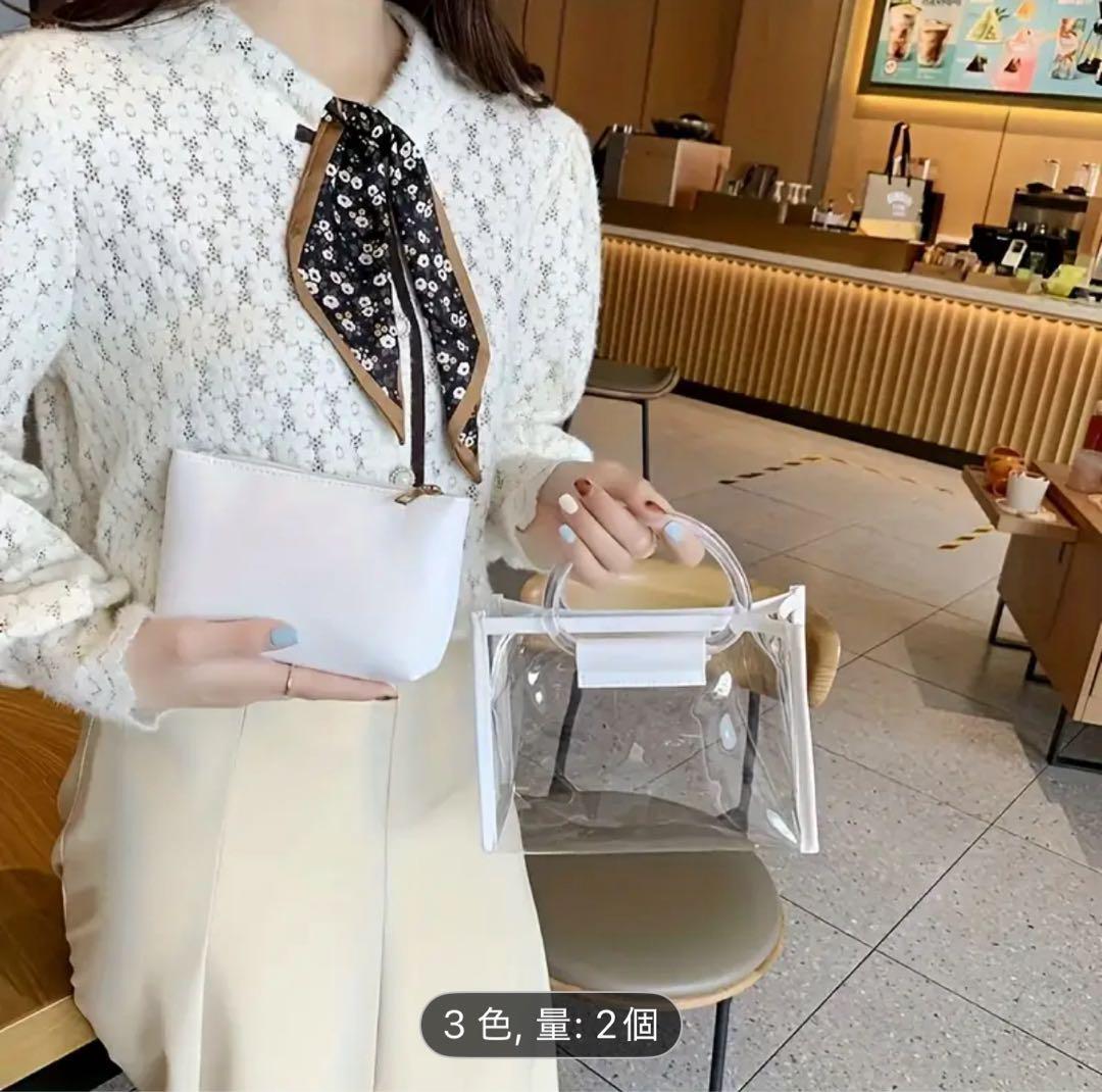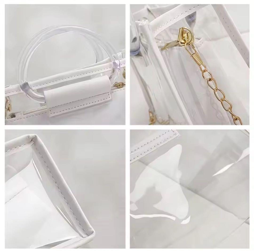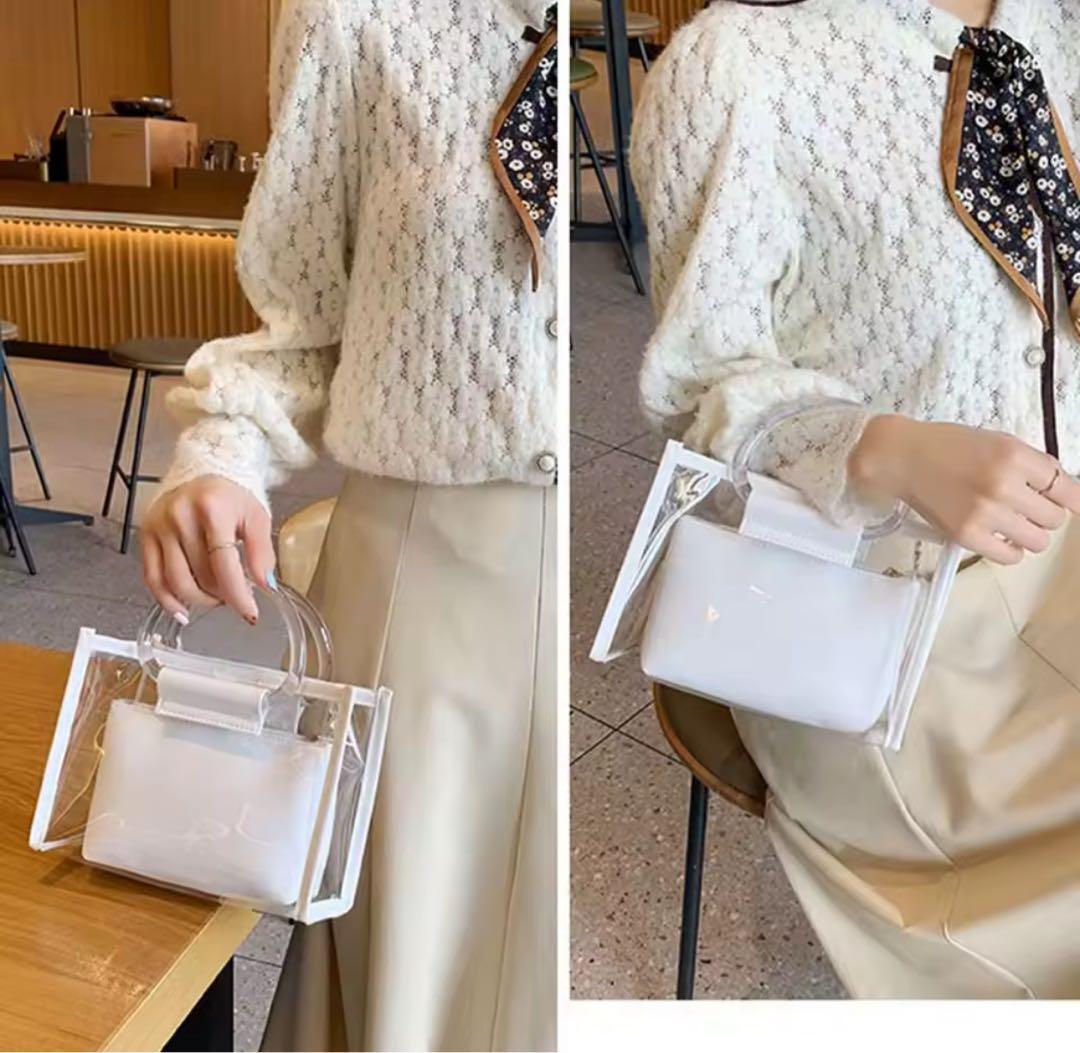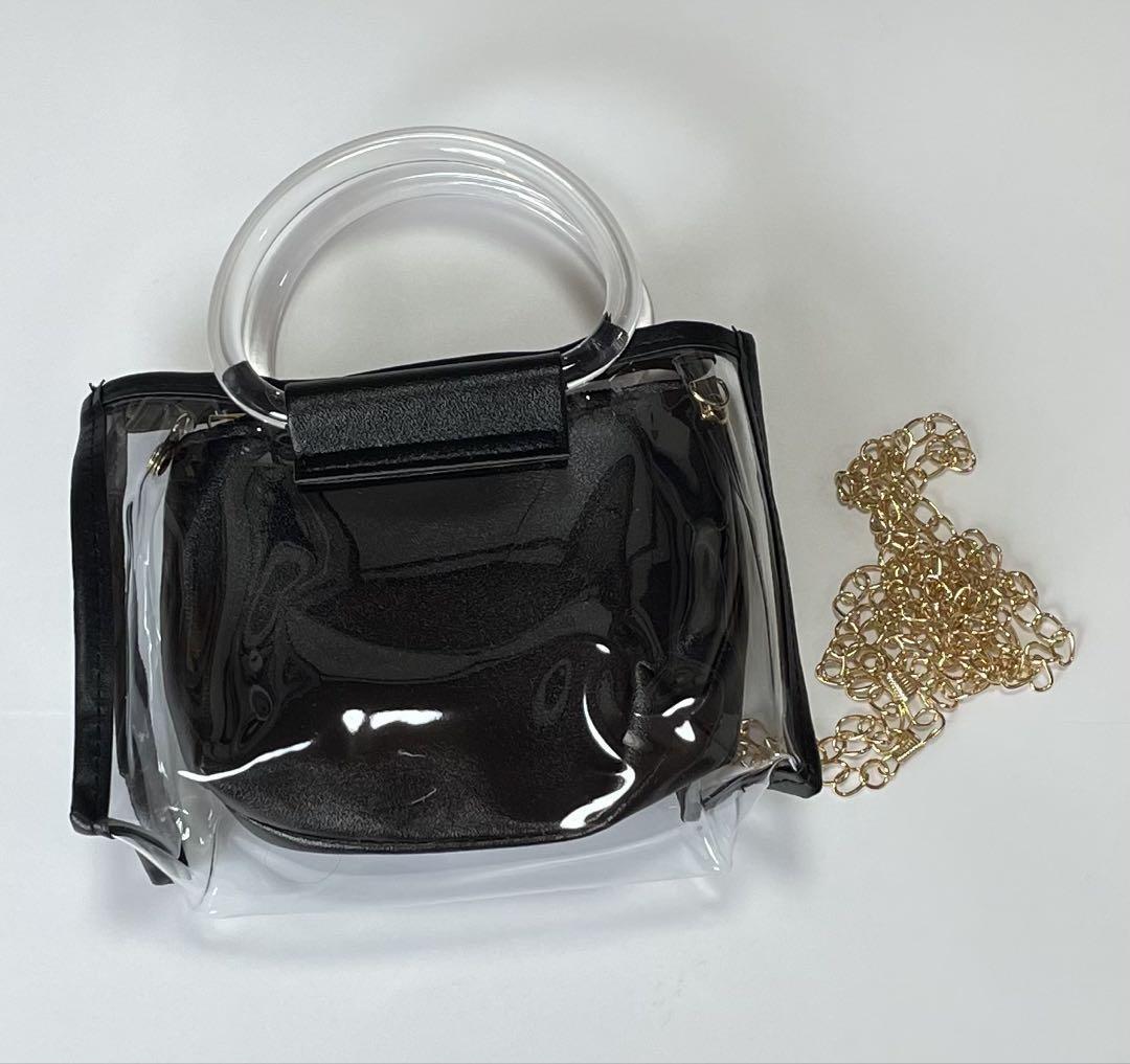 ・透明の持ち手ハンドル付きで、ミニハンドバッグとしても使える2WAY仕様!