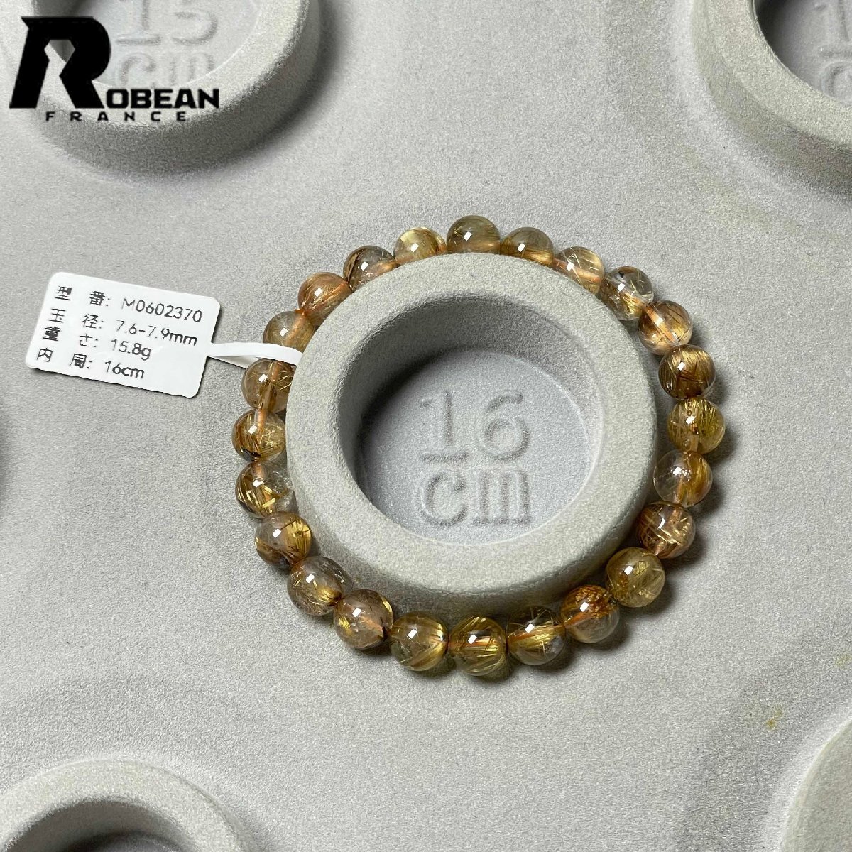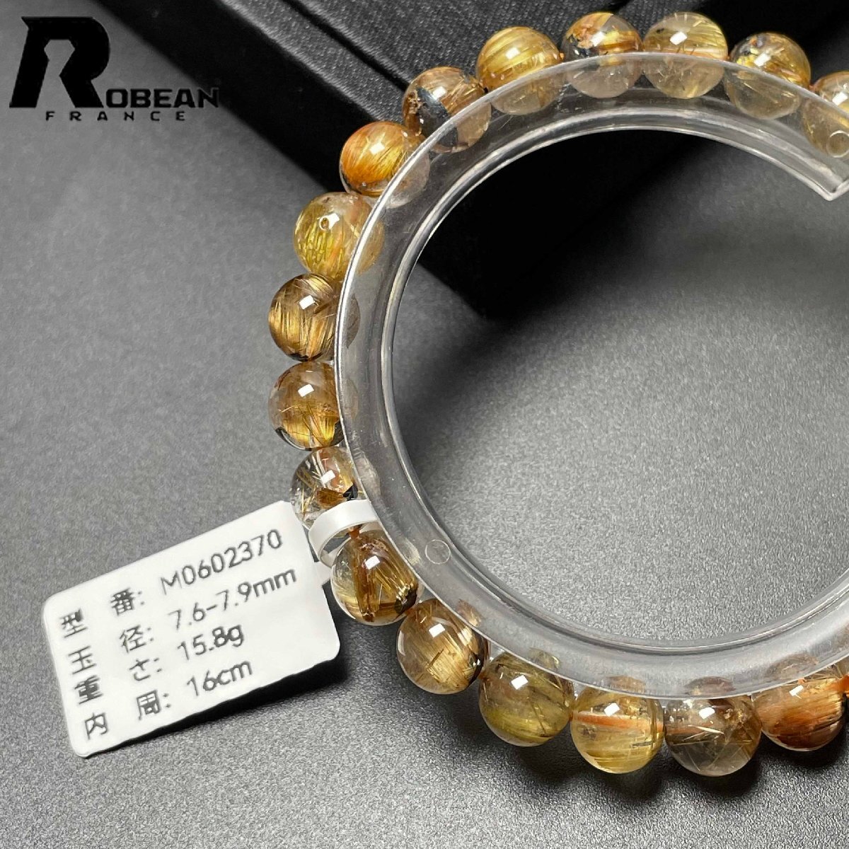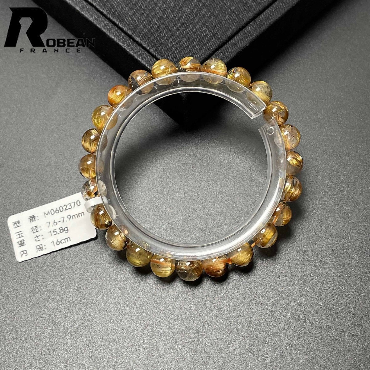 逸品 EU製 定価8万円★ROBEAN・太陽花タイチンルチル★黄金針水晶 金運 開運 ゴールド ブレスレット パワーストーン 7.6-7.9mm M0602370