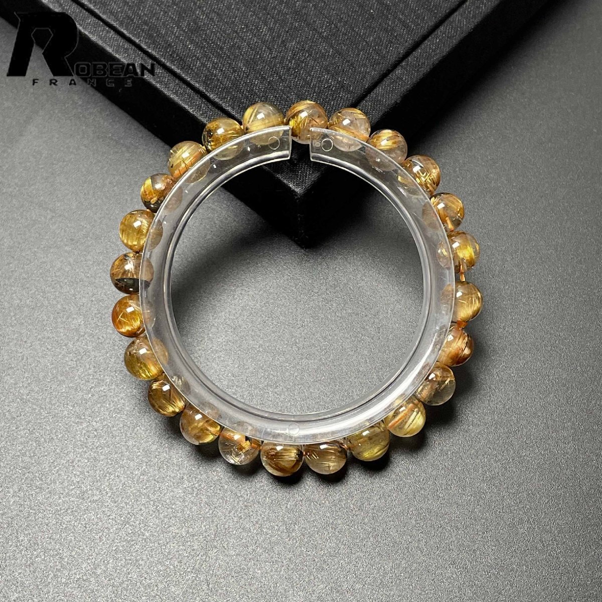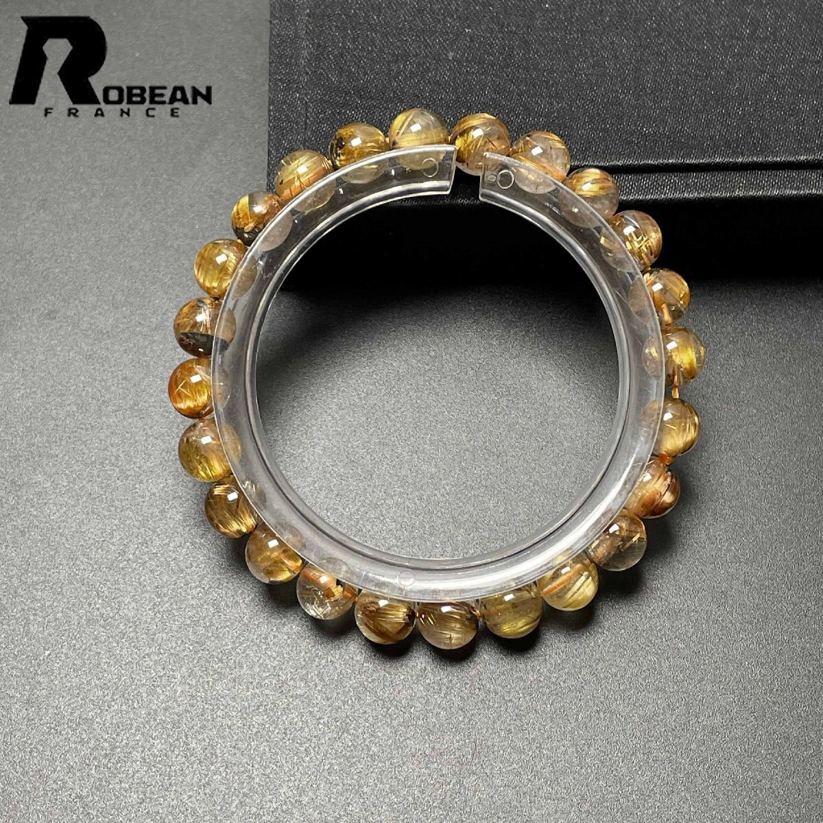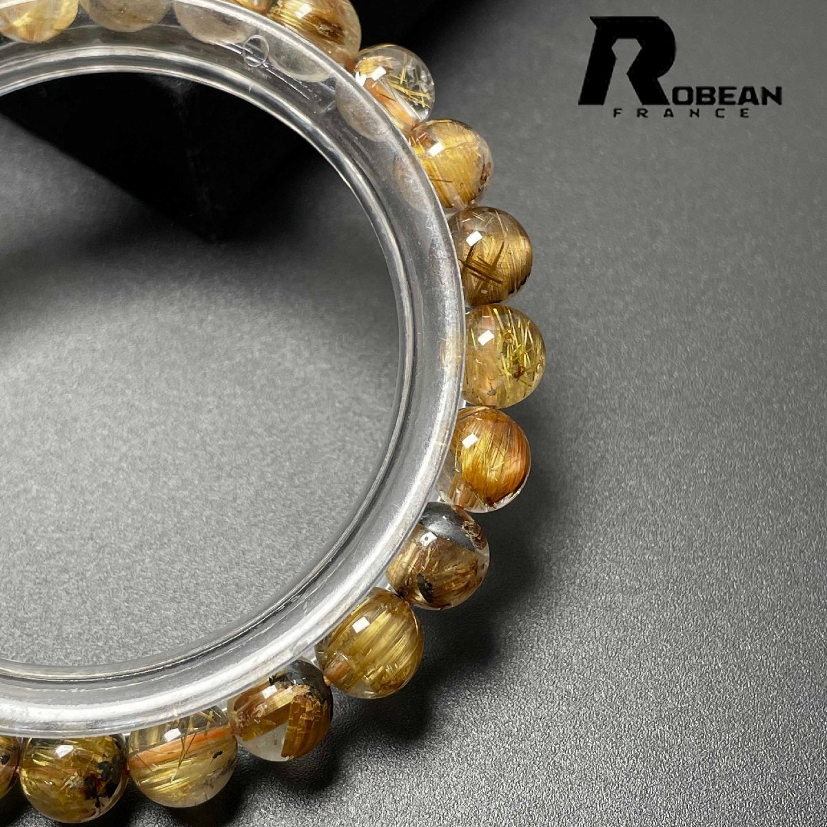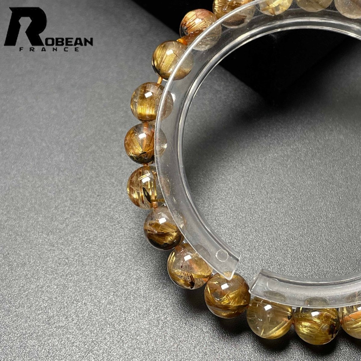 逸品 EU製 定価8万円★ROBEAN・太陽花タイチンルチル★黄金針水晶 金運 開運 ゴールド ブレスレット パワーストーン 7.6-7.9mm M0602370