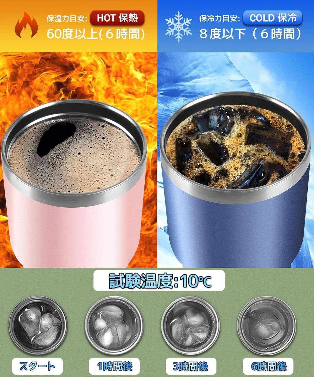 ★【抜群の保温・保冷効果】保温力目安:50度以上(6時間)/保冷力目安:8度以下(6時間)。保冷・保温に優れた真空断熱二重構造の水筒なので長時間の飲み頃の温度をキープします。【氷をたくさん入れてアイスペールとして】間口の大きさと真空断熱構造の保冷力を活かし、氷だけを長時間保管するアイスペールとしての使用も可能でロックアイスも入れられます。マットな6色(ブラック、ホワイト、ピンク、パープル、グリーン、ブルー)から選べり、男の子と女の子両方も適用の真空断熱タンブラーですよ!