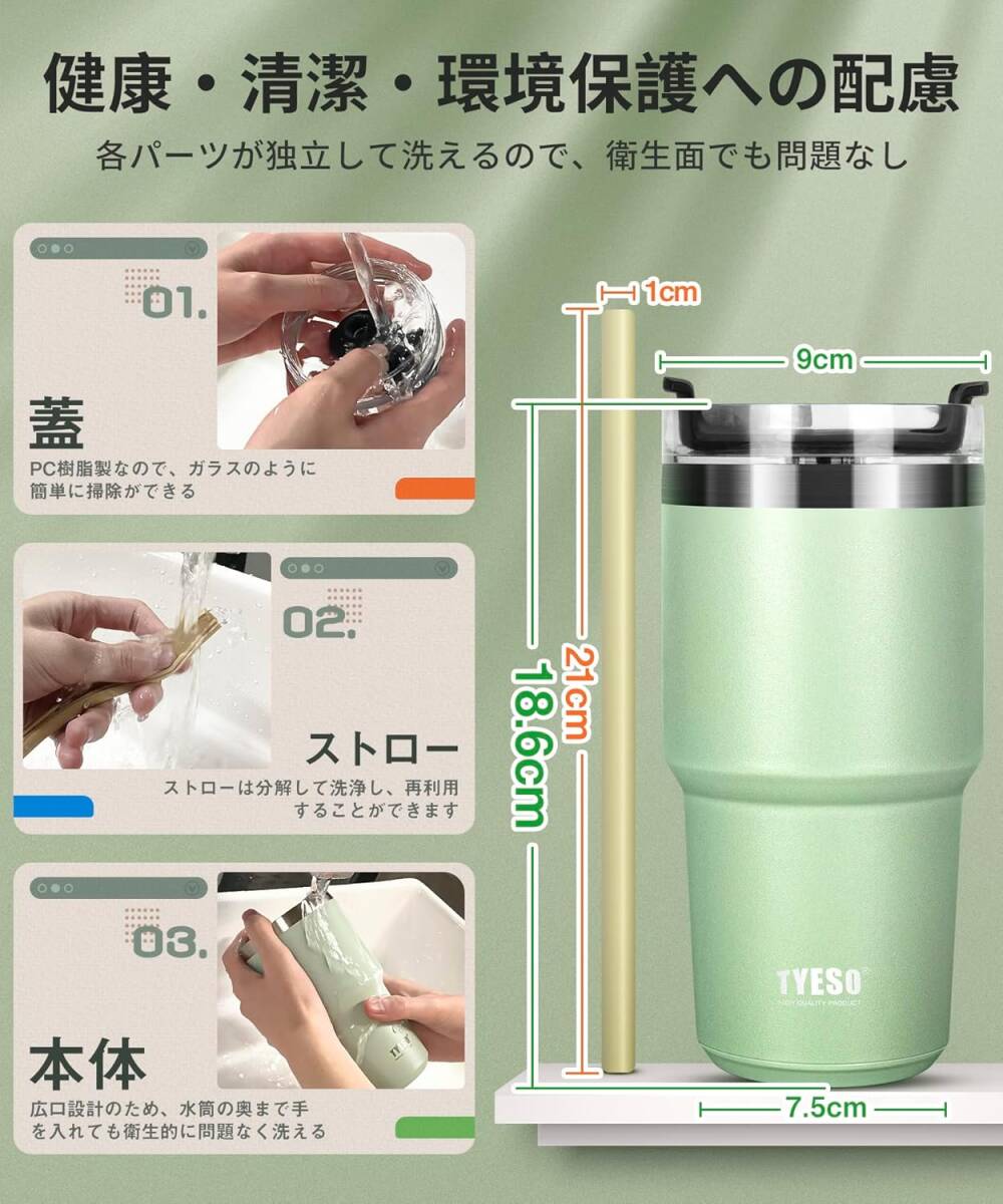 ★【令和4年強化革新設計】【蓋、ストローが分解して洗える】蓋とストローはクリーニングデザインであり、カビを心配する必要はもうありません。ストローを使用することでパッと飲みやすく、トレーニングやデスクワークなどの水分補給におすすめなクエンチャー!【3WAYのツイストカバー】フタはトライタン樹脂製で中身が見え、完全密閉ができます。フタに付属されたカバーをスライドして回すことで、飲み口をストロー飲みだけでなく、直飲み用、またホコリなどの混入を防ぐ飲み口カバーとして使用可能でプロのキャンパーや登山愛好家から多くの支持を受けるTYESOアウトドアスポーツボトルです!