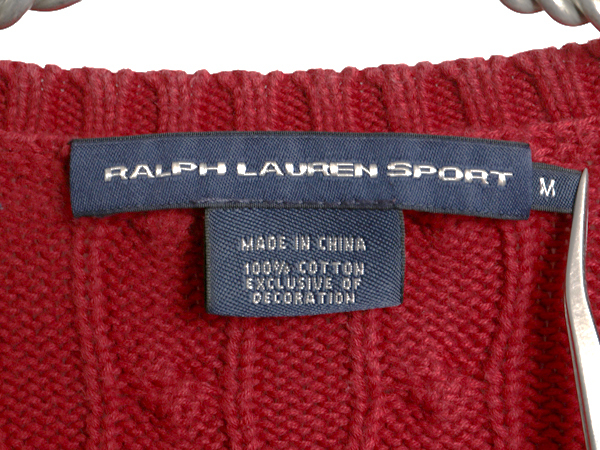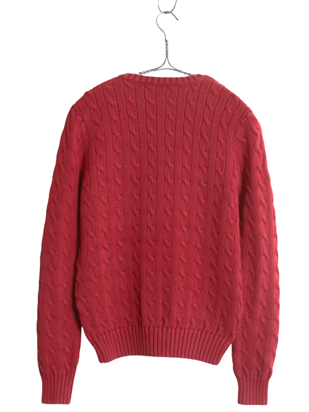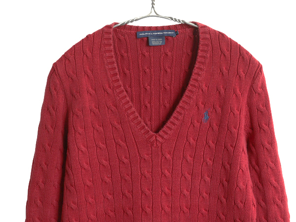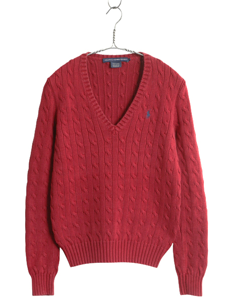 商品名 | ラルフローレン コットン ケーブル ニット セーター レディース М 古着 ポロ スポーツ 長袖ニット Vネック ワンポイント シンプル レッド |
