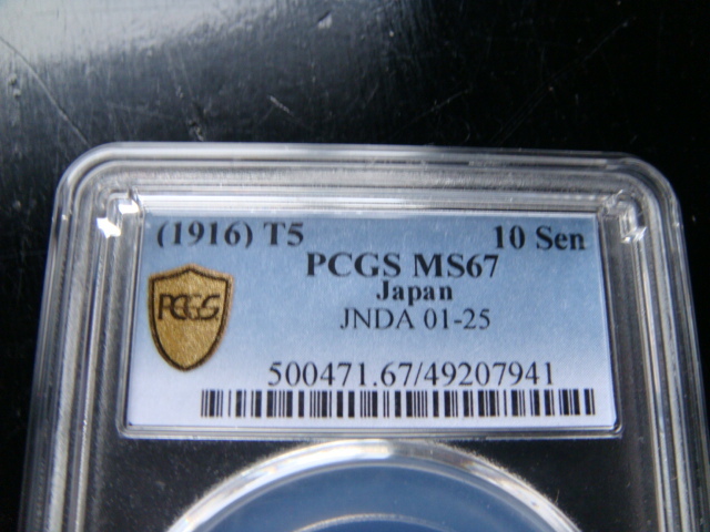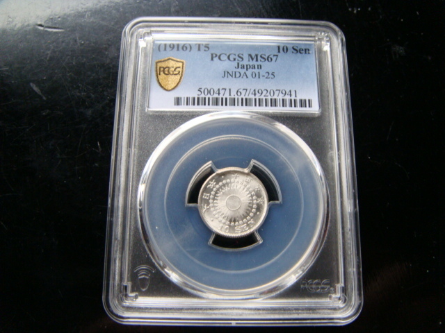 PCGSMS-67/旭日10銭銀貨/大正 5 年(1916年)/完全未使用/良品です。画像を参照願います。
