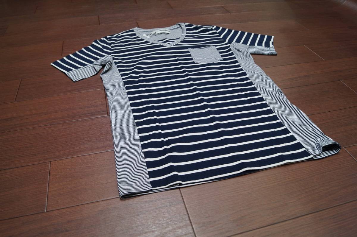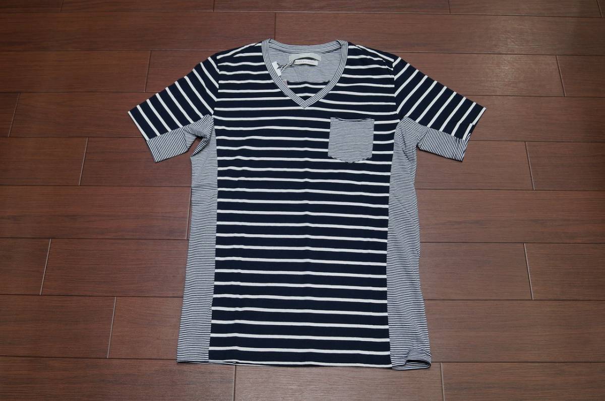★☆VADEL tokyo×MEN'SMELROSE ボーダー 切替 Vネック Tシャツ 半袖/M/3/ネイビー/紺/メンズメルローズ バデルトウキョウ☆★