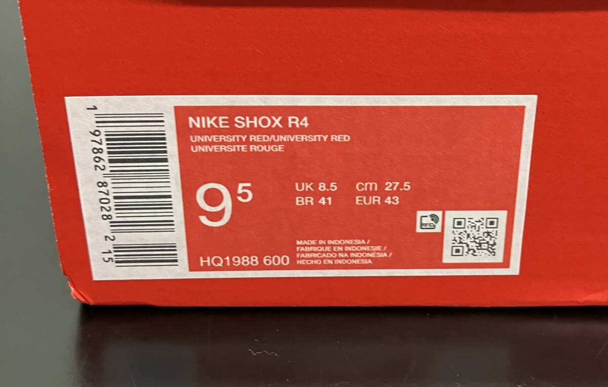 ブランド:NIKE 型番:HQ1988-600 品名: Nike Shox R4 "Black/Red" 表記サイズ:27.5cm カラー:レッド ブラック シルバー |