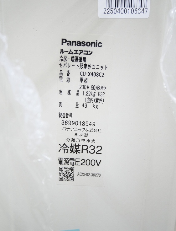 【未使用品】【室外機のみ】Panasonic製/ルームエアコン/14畳用/CU-X408C2(7090372)