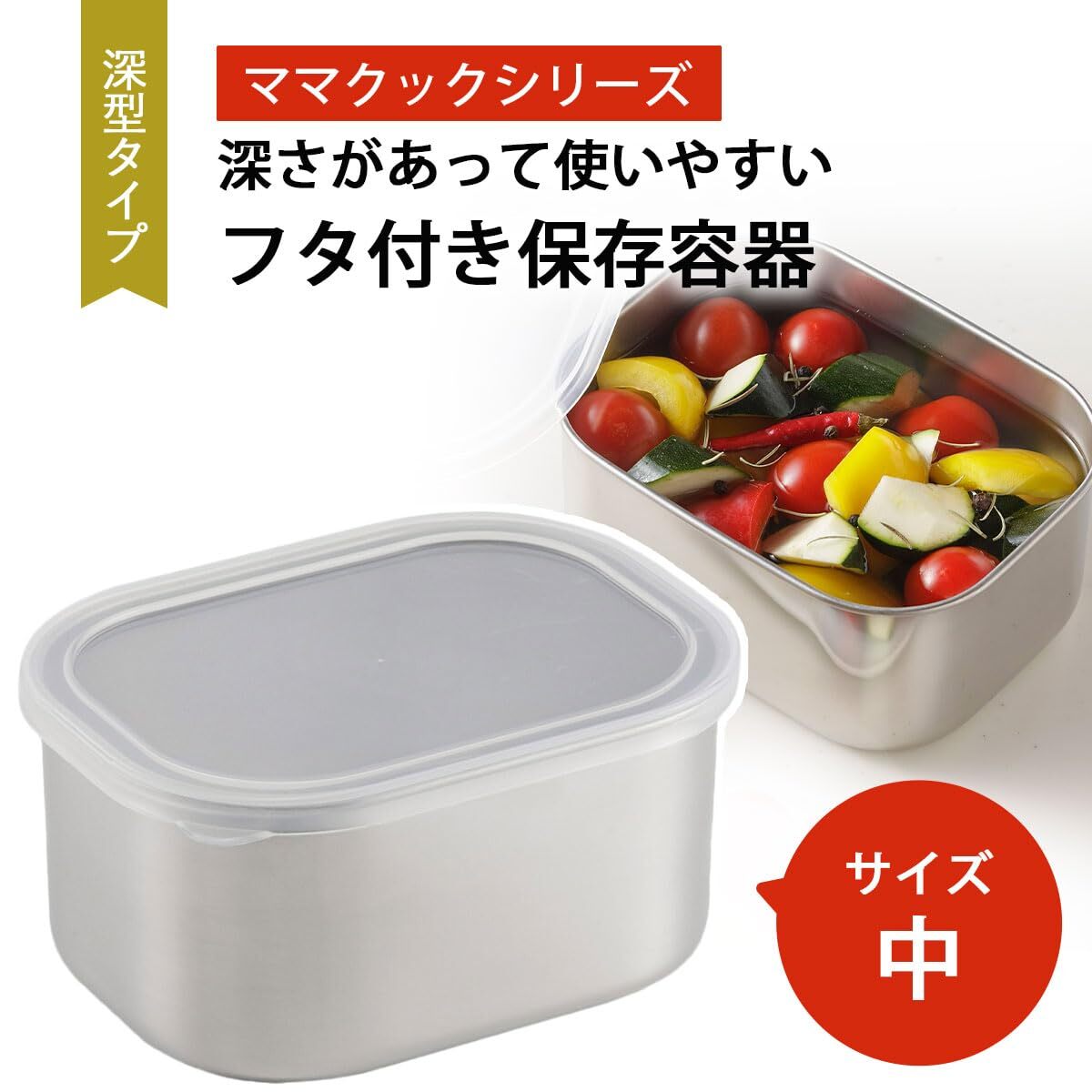 下村企販 保存容器 角バット 深型 中 【日本製】 作り置き 下ごしらえに便利 サビにくい 一時保存 フタ付き ママクック 燕三条 43252