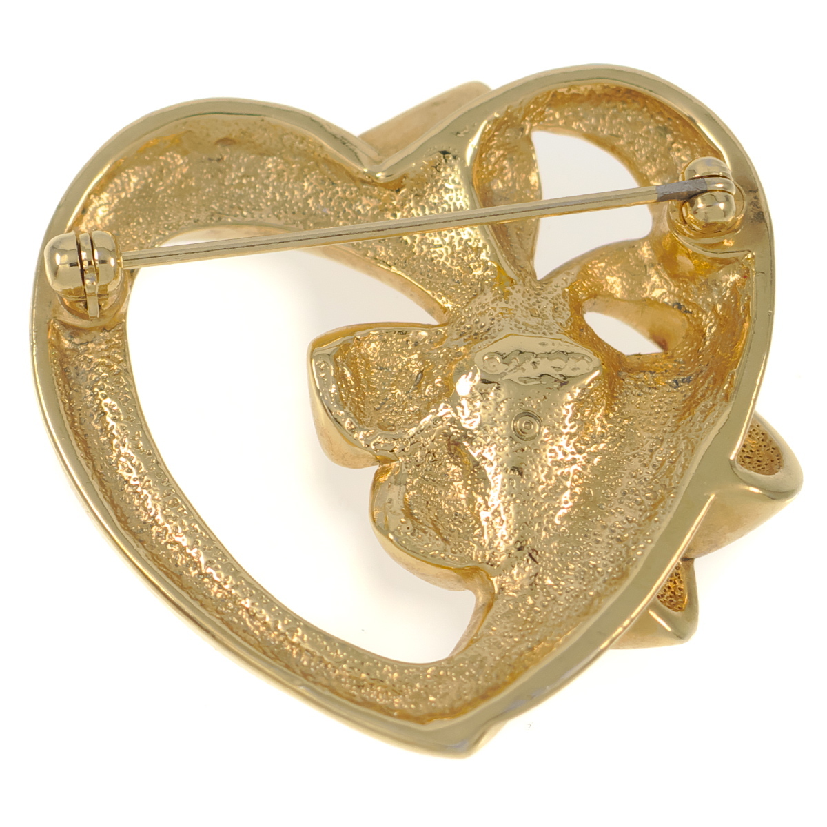 A9905◆【AVON】◆ ハート&リボンモチーフ グリーン系ラインストーン エイボン ◆ ヴィンテージブローチ ◆