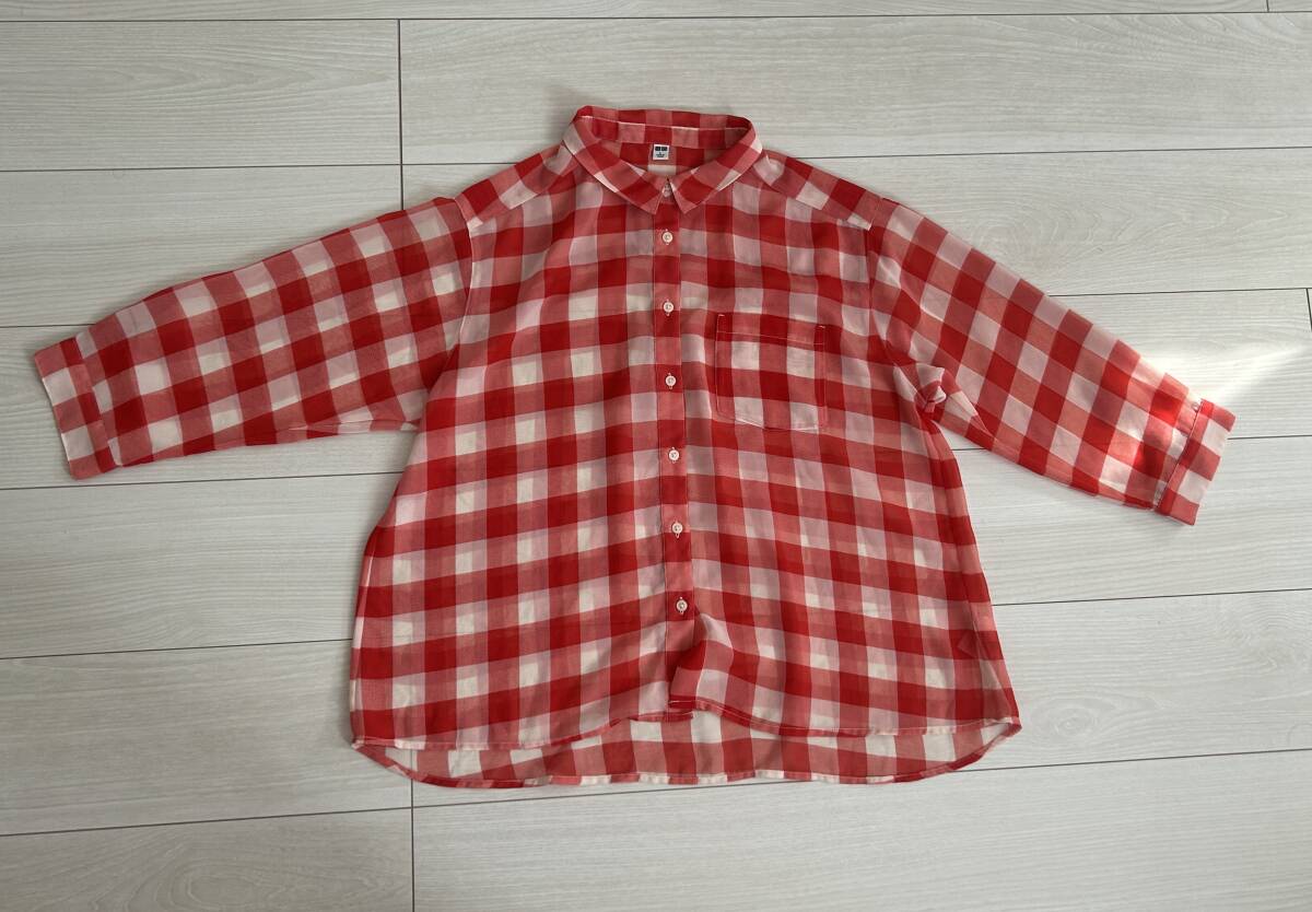 商品名 ★UNIQLO ユニクロ シフォンチェックブラウス 7分袖 Lサイズ★ |