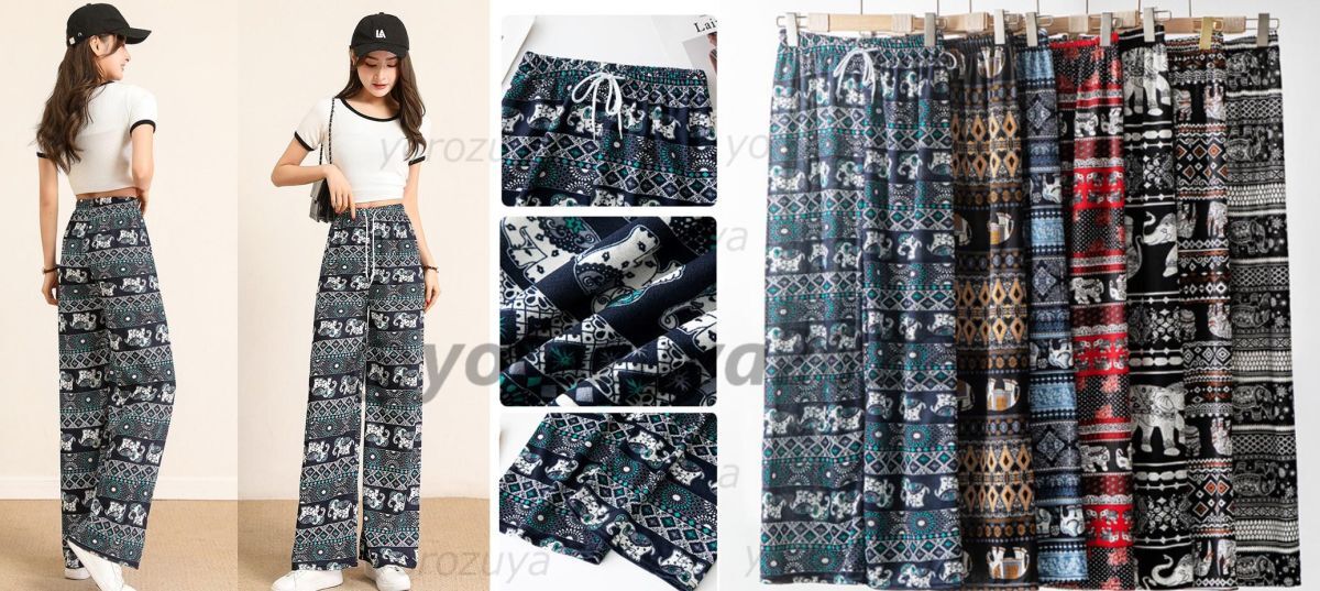 141-592-7 インディアン柄 ワイドレッグパンツ【画像カラー,Fサイズ】レディース 女性 大きいサイズ バギー ズボン パンツ ワイドパンツ.1