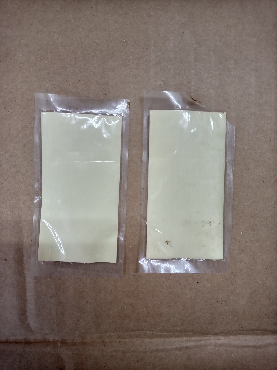 写真の通り、未開封品ですが、ピンクの方、ビニールの上部が少し欠けています。どちらも全体的に小ジワがございます。