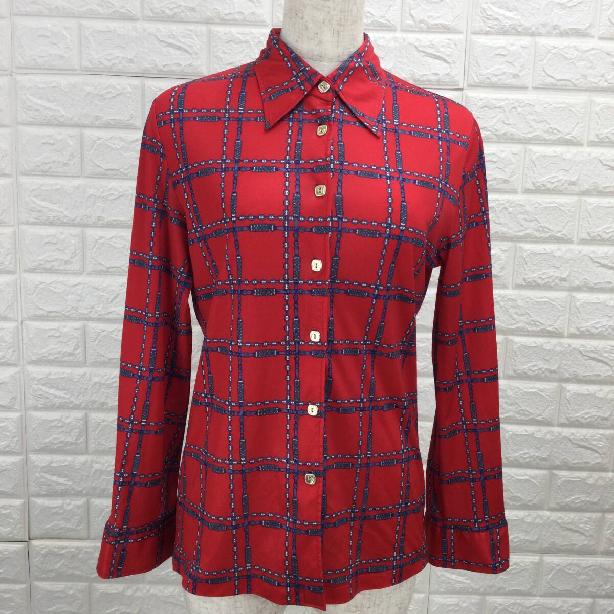 【A1295】 BELLADY ベラディ Mサイズ相当 チェック柄 シャツ レディース 赤 長袖 レトロデザイン 秋冬 カジュアル