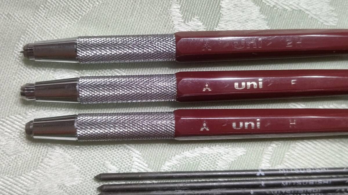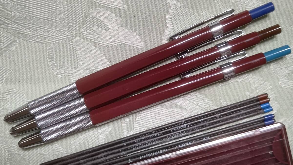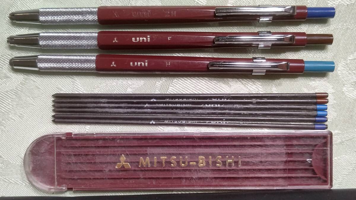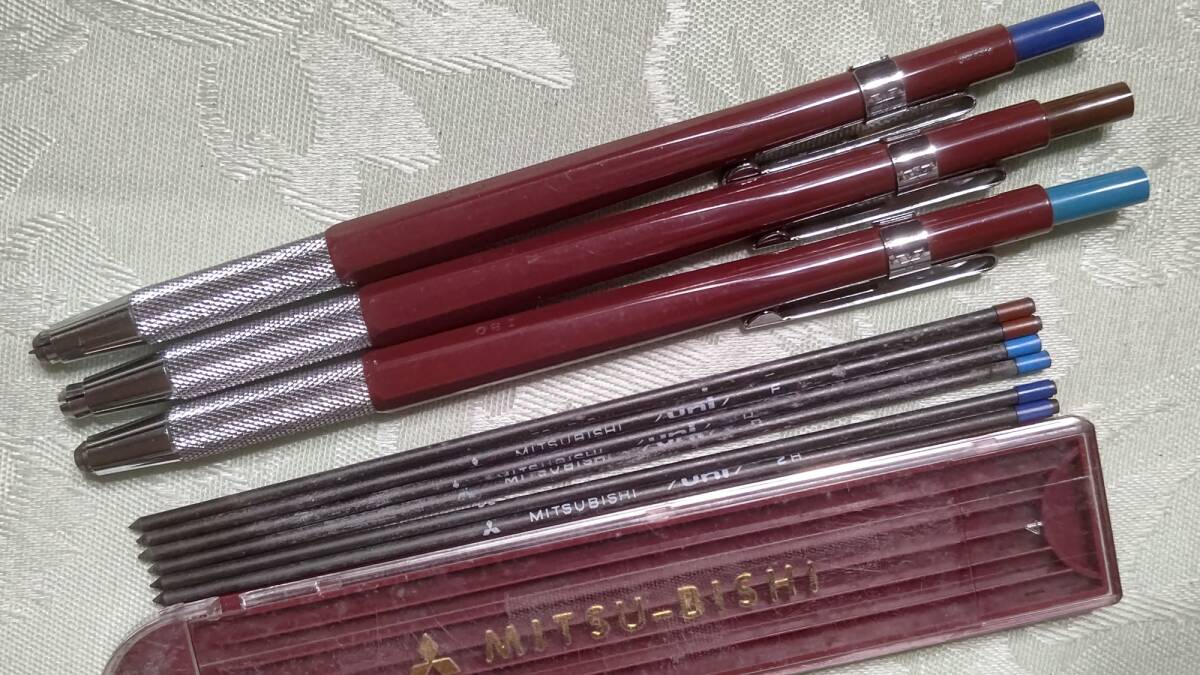 922-12 昭和レトロ 廃盤 三菱鉛筆 uni ユニ 芯ホルダー 2.0mm 色違い 3本セット ドロップ式 初期型 未使用替え芯ケース入り6本 ホルダーセットケース入り